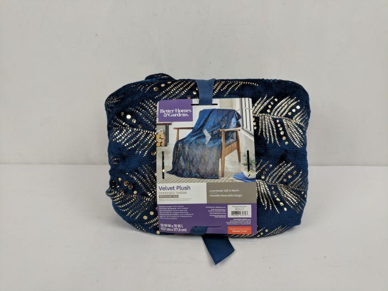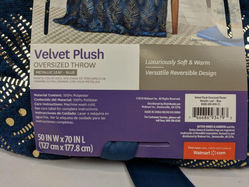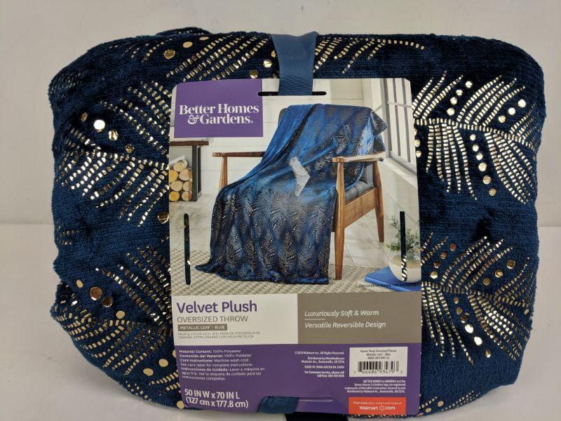 Metallic Leaf Blue Velvet Plush, Oversized Throw, Better Homes & Gardens, Unwraped - New