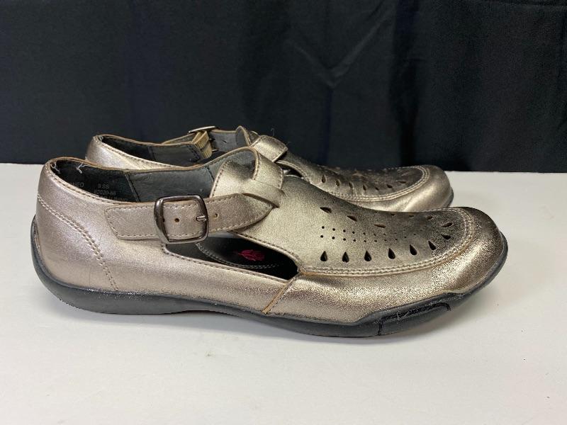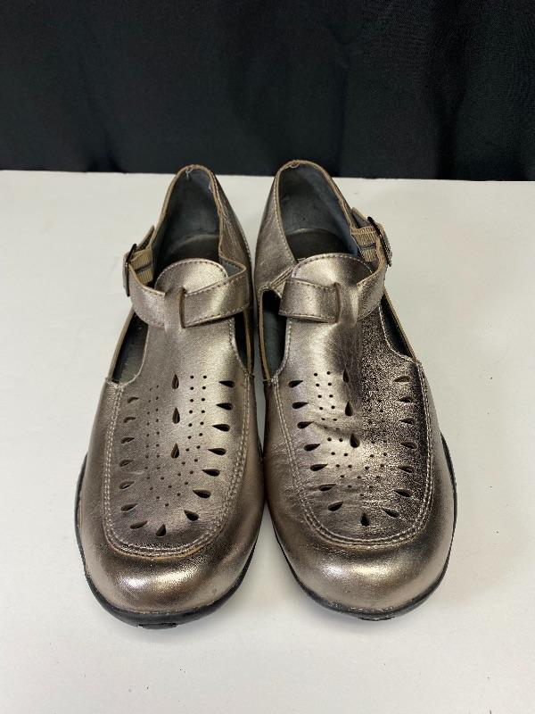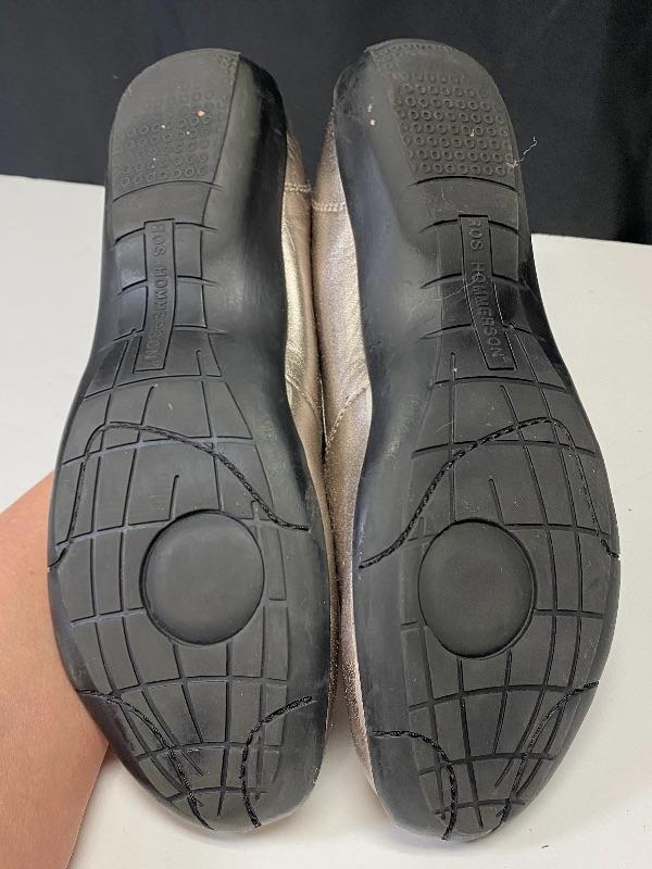 Metallic Ros Hommerson sandals. Rubber sole. Previously owned and worn. Tops look good, you can see the wear on the soles.