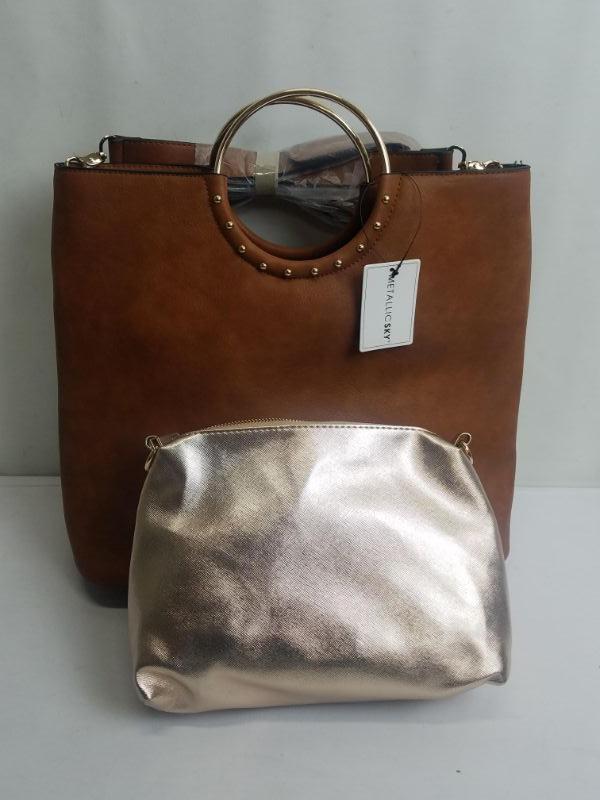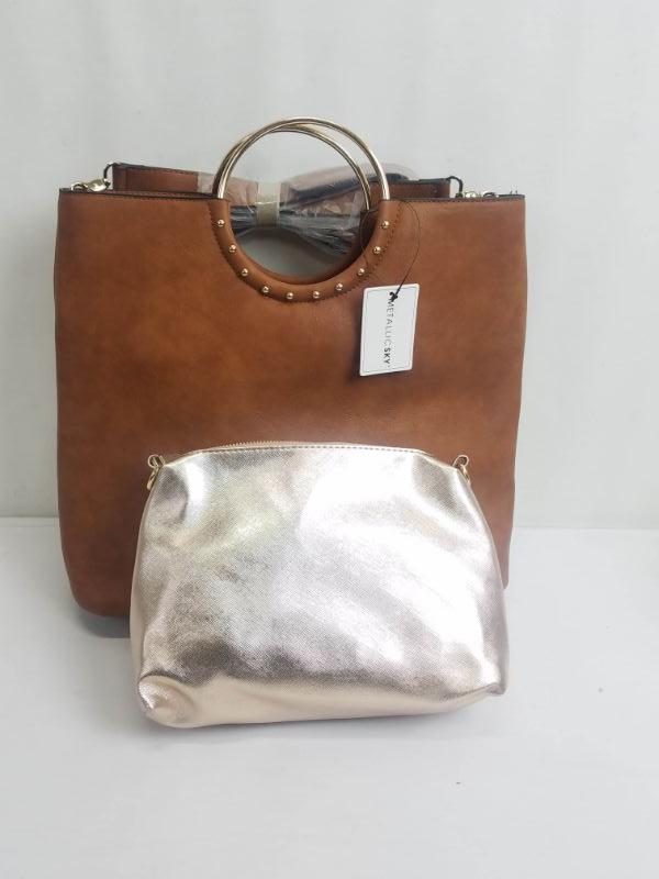 Metallic Sky Brown Handbag Purse with rose gold removable pouch - New