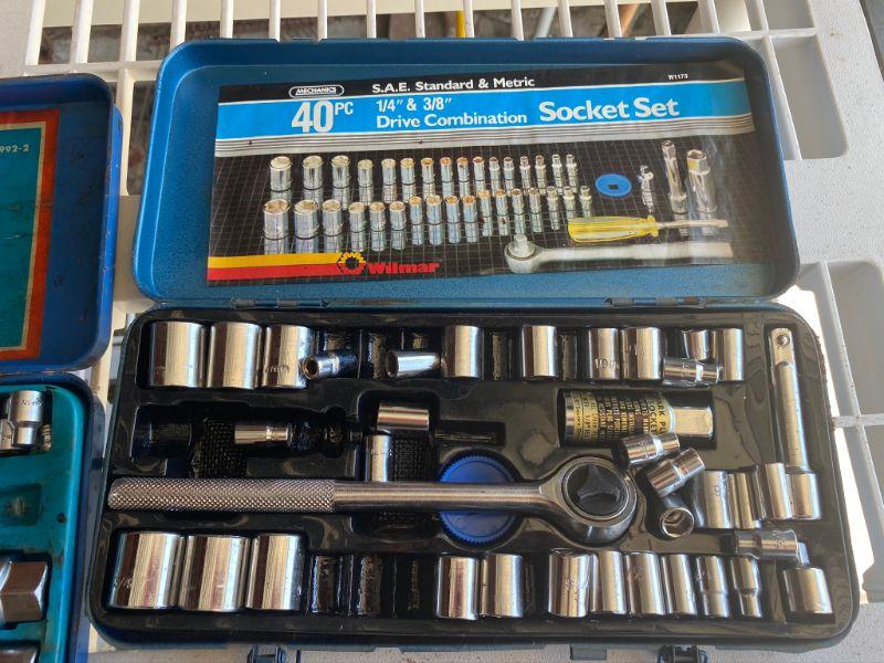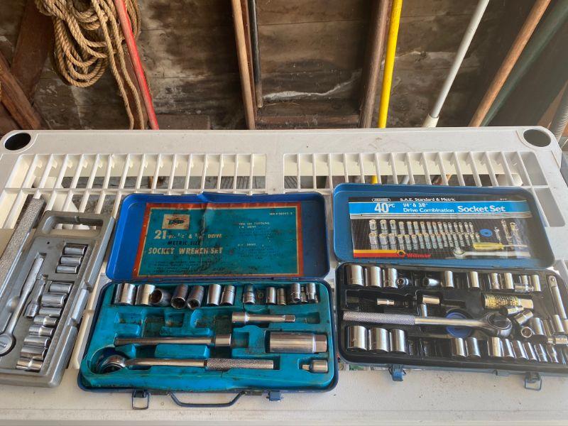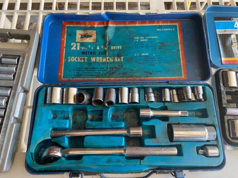 Lot of metric & standard socket set. Ratchets included in the sets. Lot includes all 3 sets photo'd.