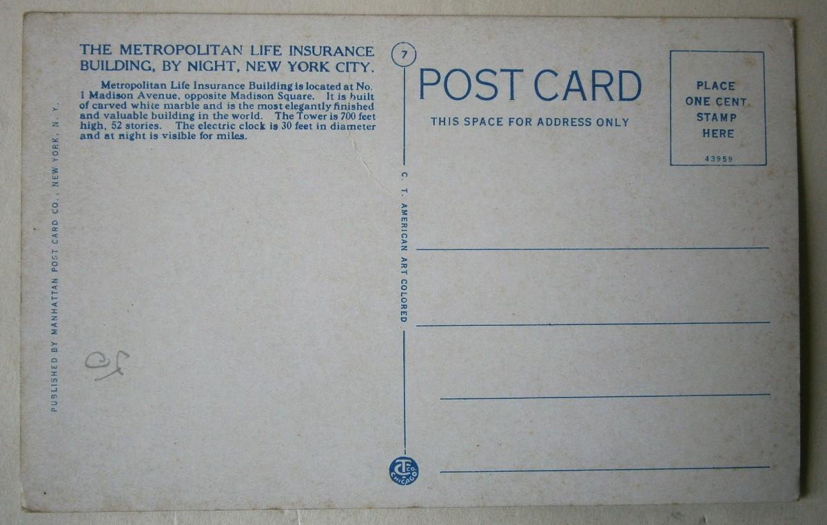 Metropolitan Life Ins. Co., N.Y. City, early 1900's, unused