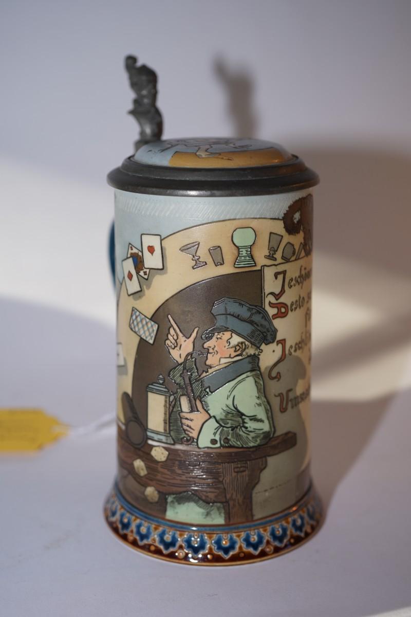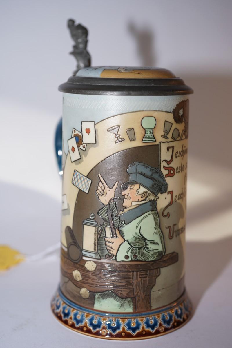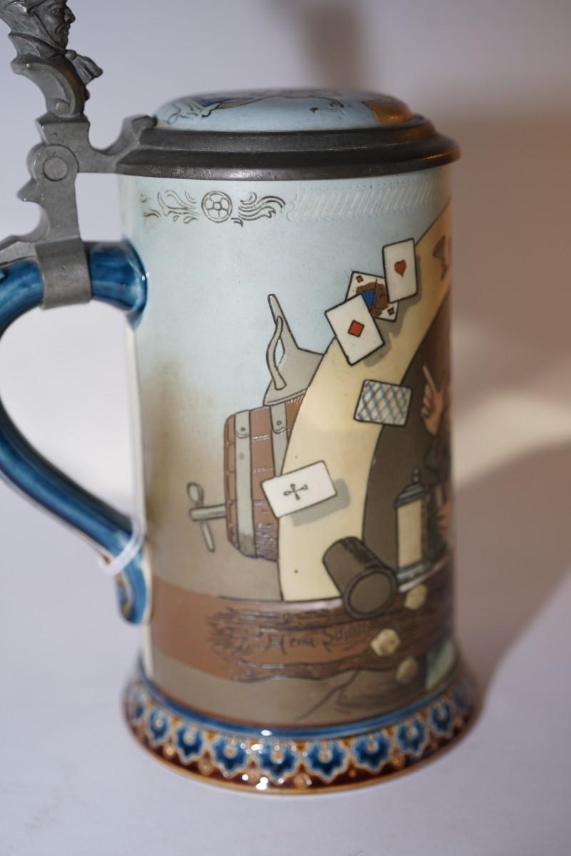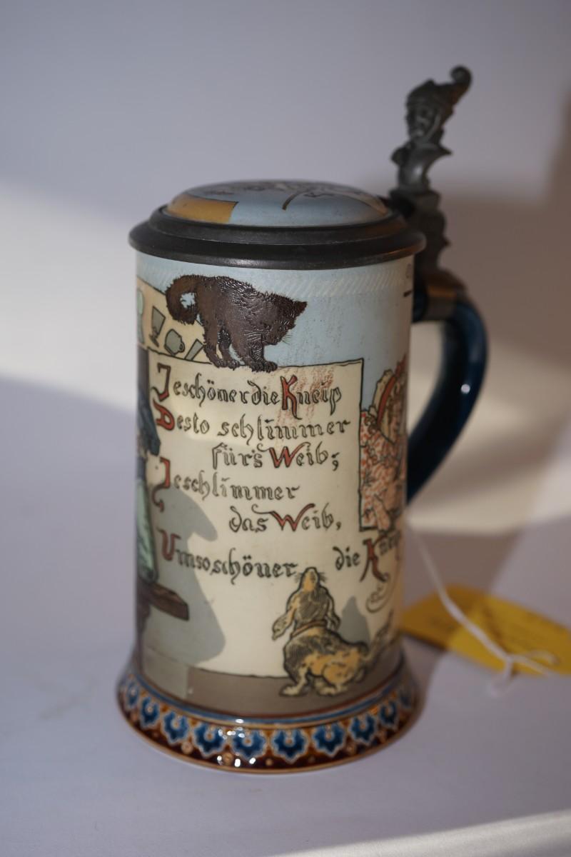 METTLACH #2090 CLUB STEIN CARDS/ DOG/CAT / WIFE Signed Hein Schlitt