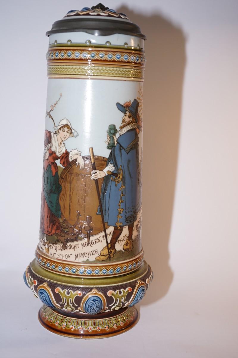 METTLACH STEIN MAN AND BAR MAID SIGNED SCHLITT 2.4 LITER