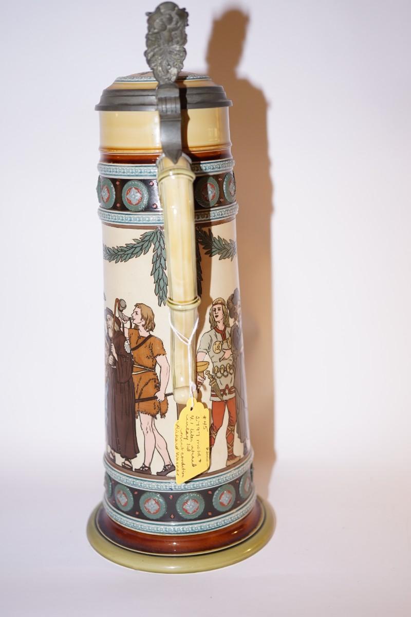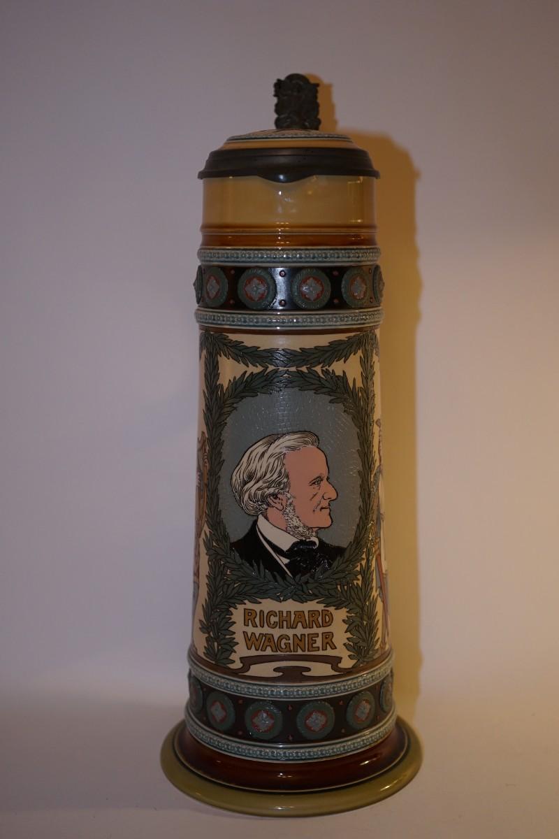 METTLACH STEIN RICHARD WAGNER 4.1 LITER RELIEF AND ETCHED.