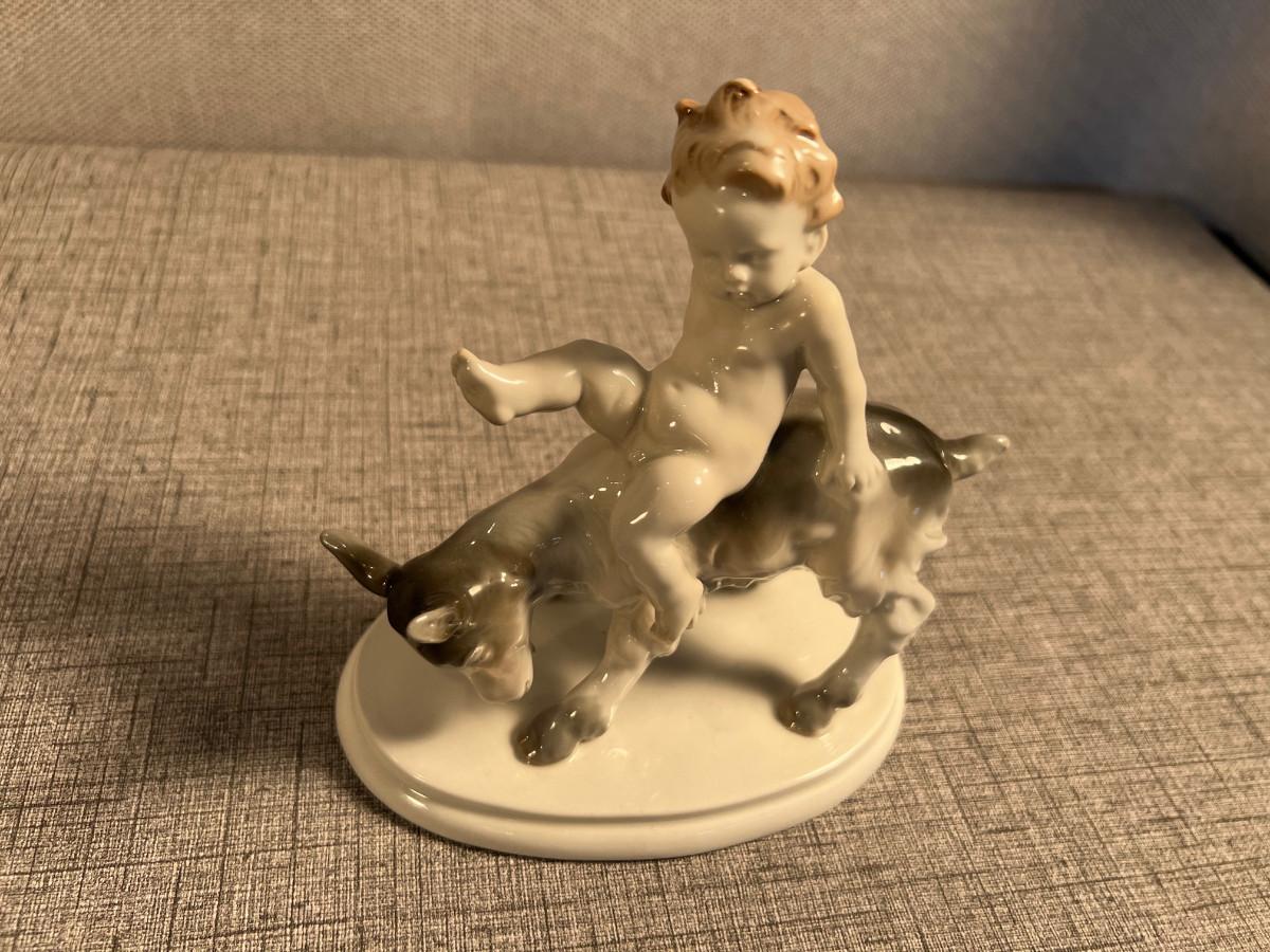 Metzler Ortloff Boy and Goat Antique Porecelain Figurine