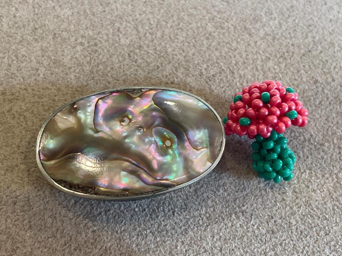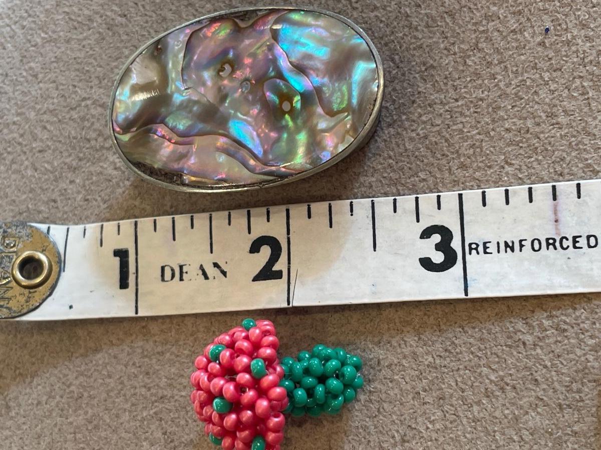 Mexican abalone trinket box and beaded mushroom
