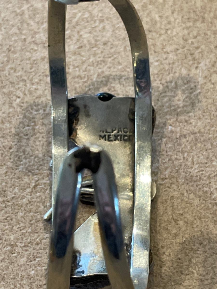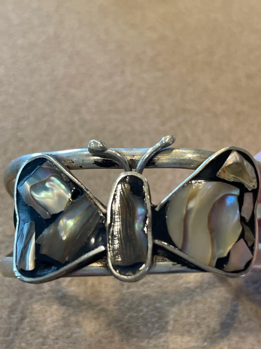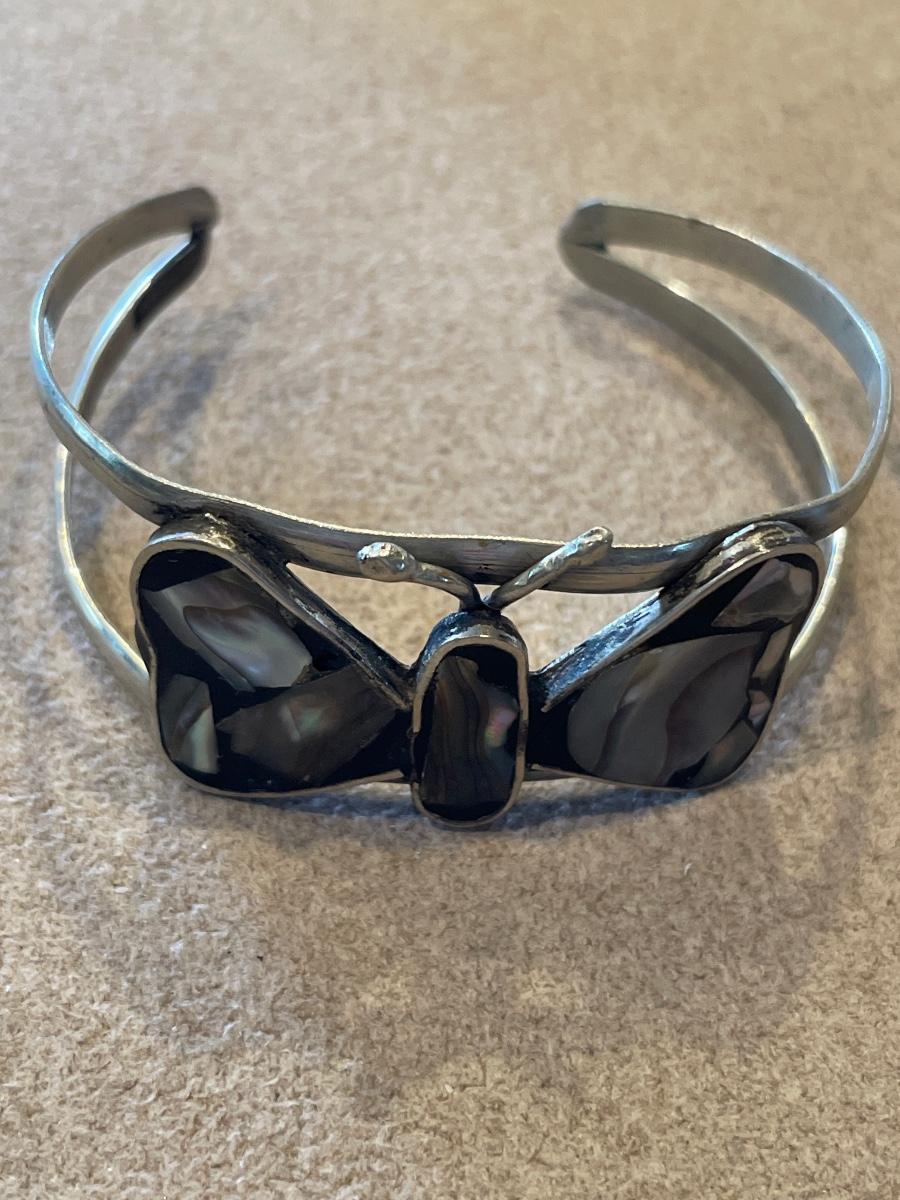 Cuff style Mexican bracelet with abalone butterfly design