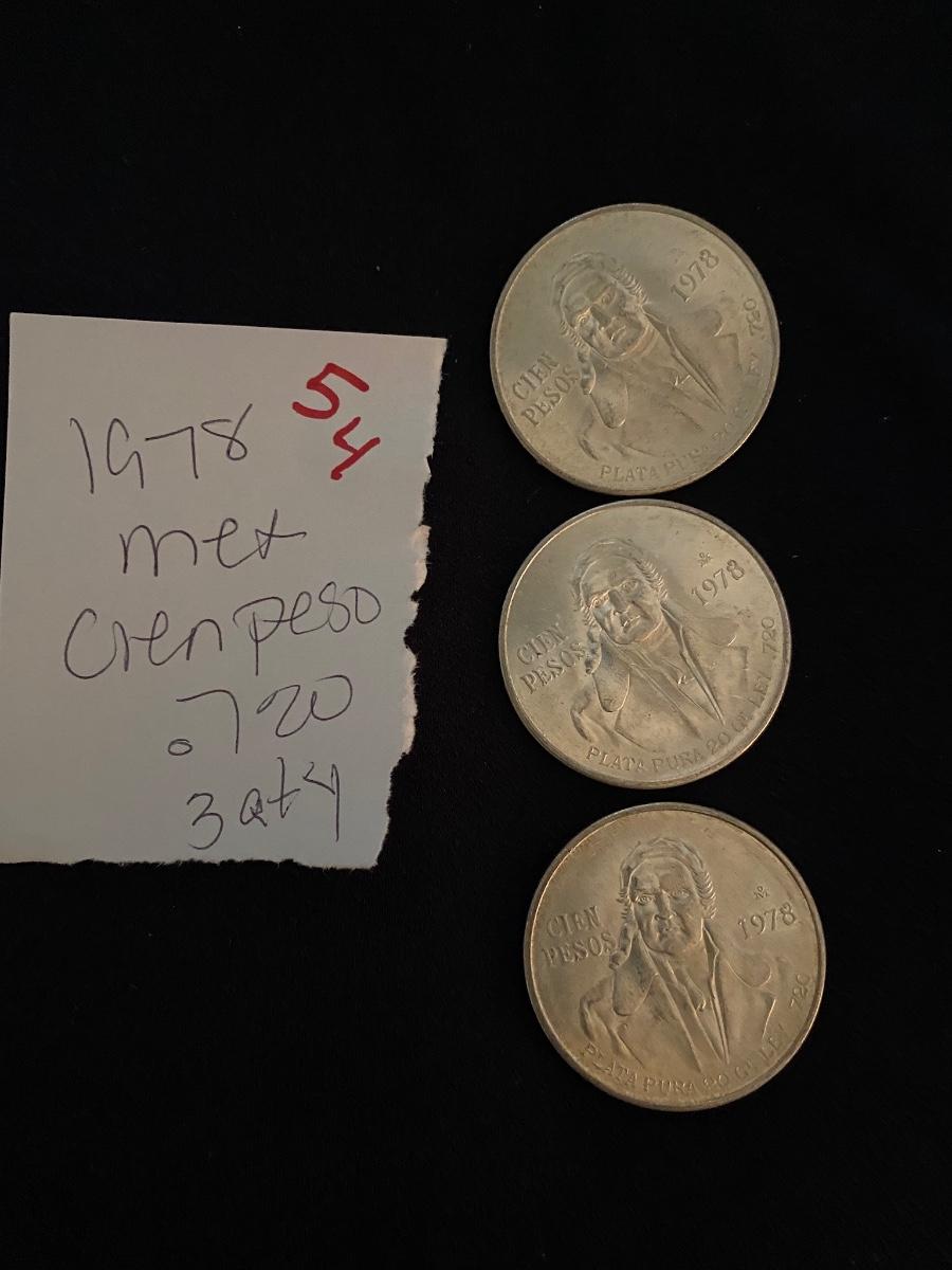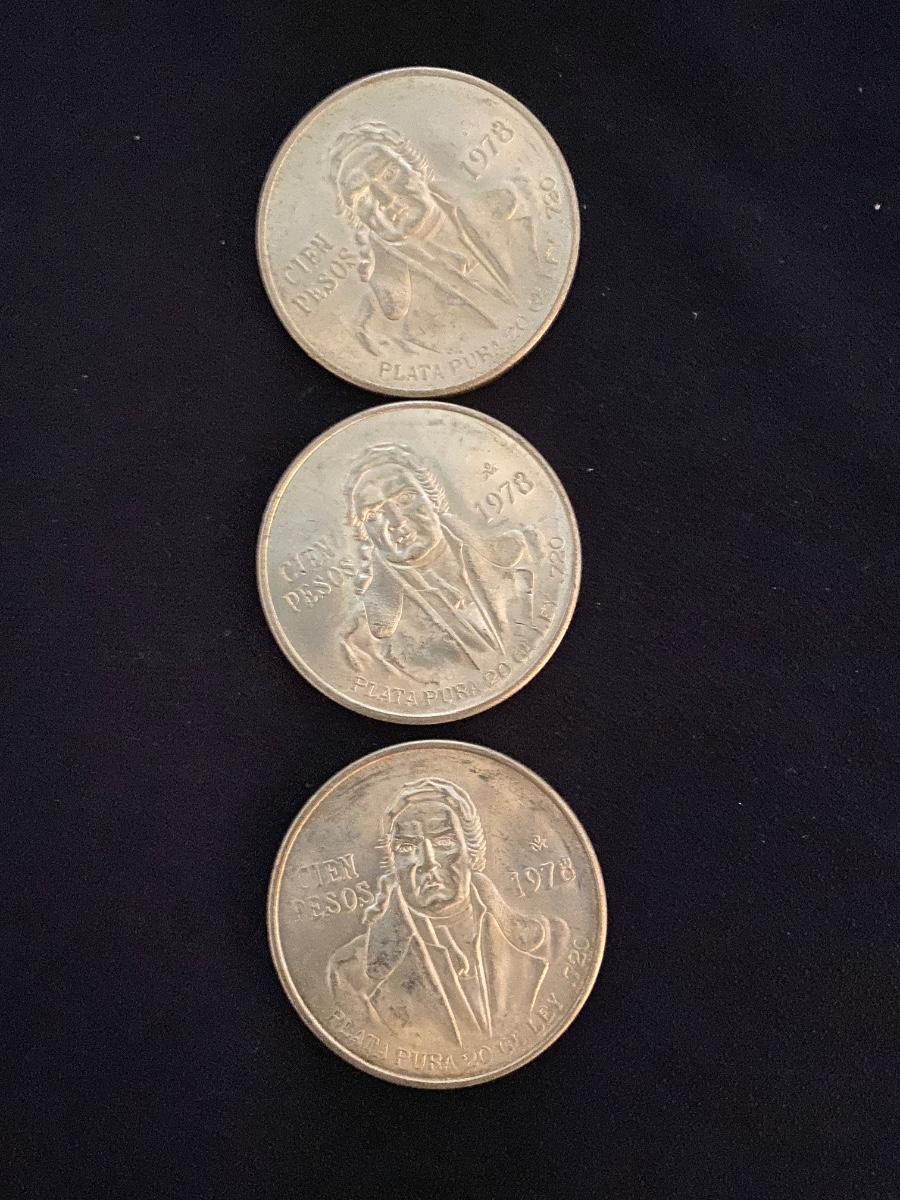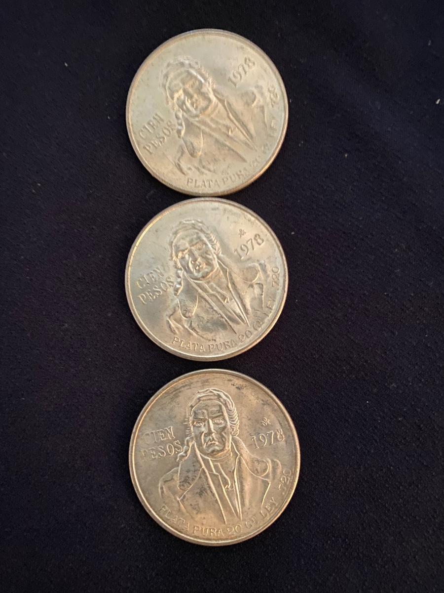 3 Mexican Cien Peso Coins 1978 .720 Silver