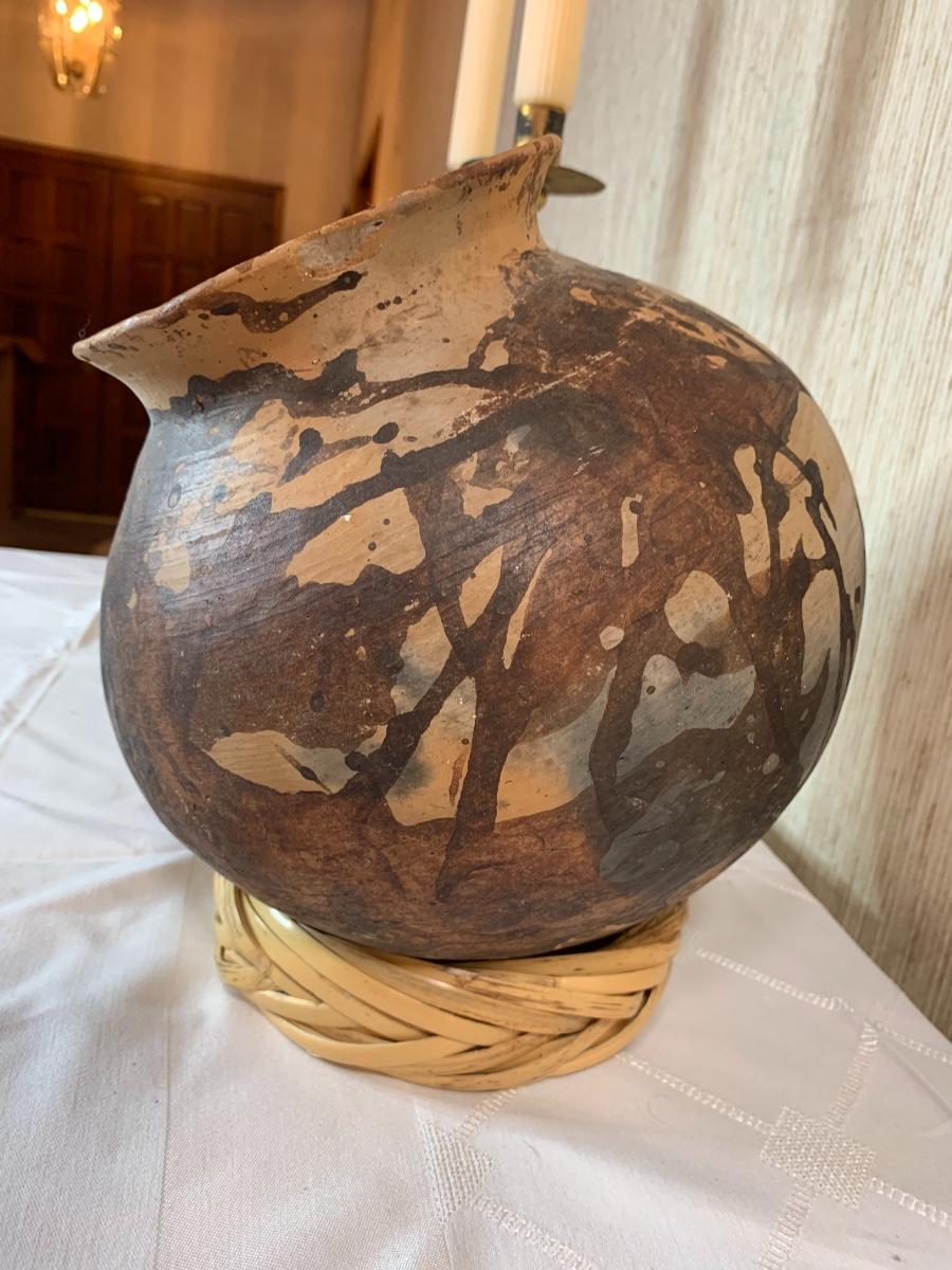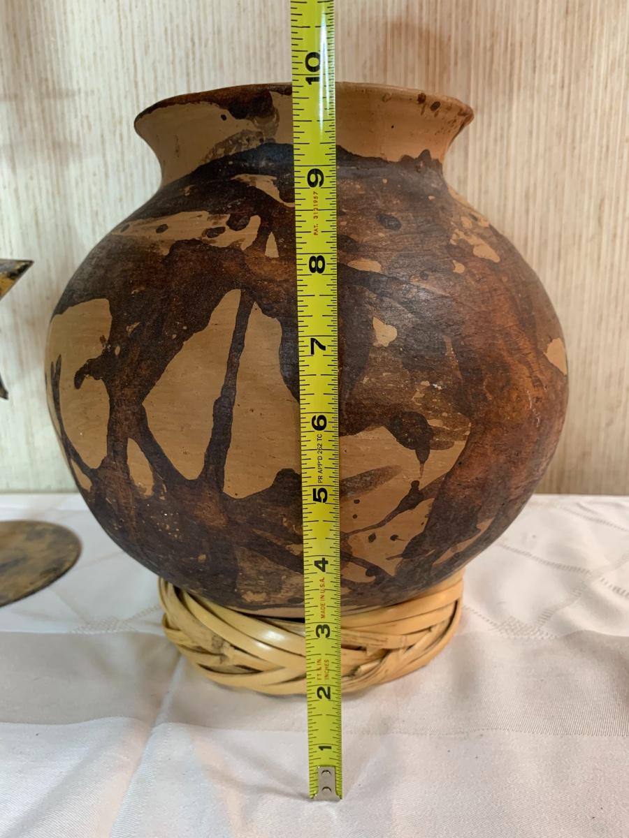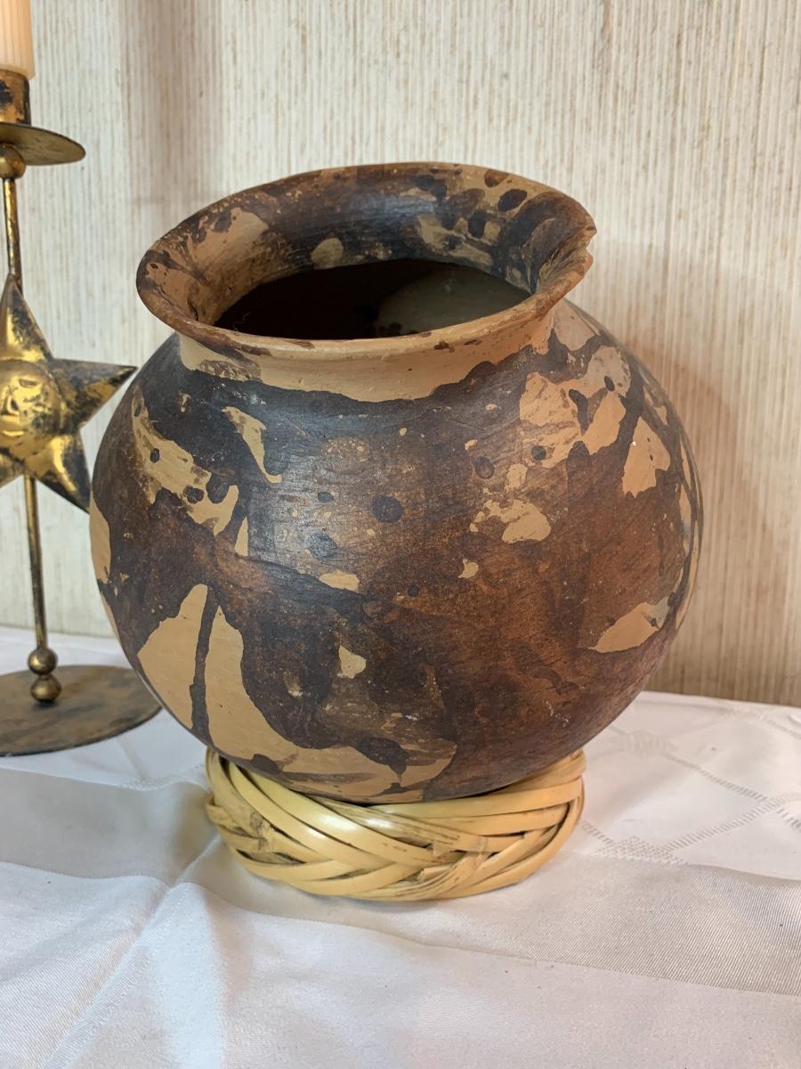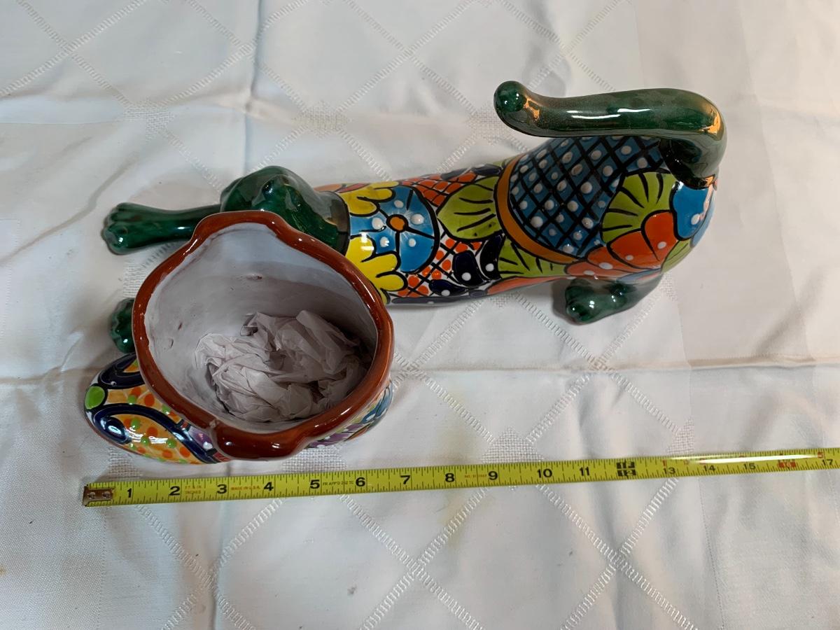 Hecho en Mexico pot, Two star with faces candlesticks, Boot and Cat Talavera figurines.
