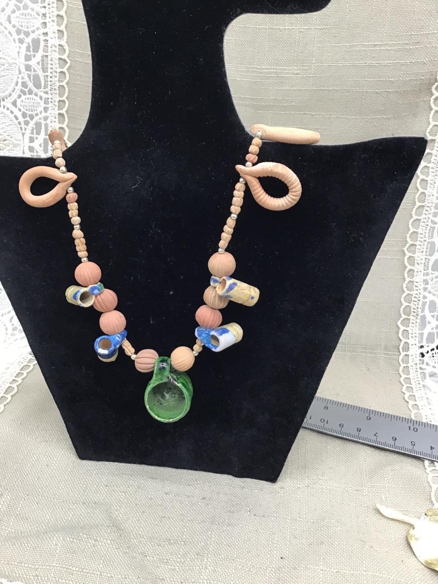 Mexican Folk Art Clay Pottery Mug Cup Necklace