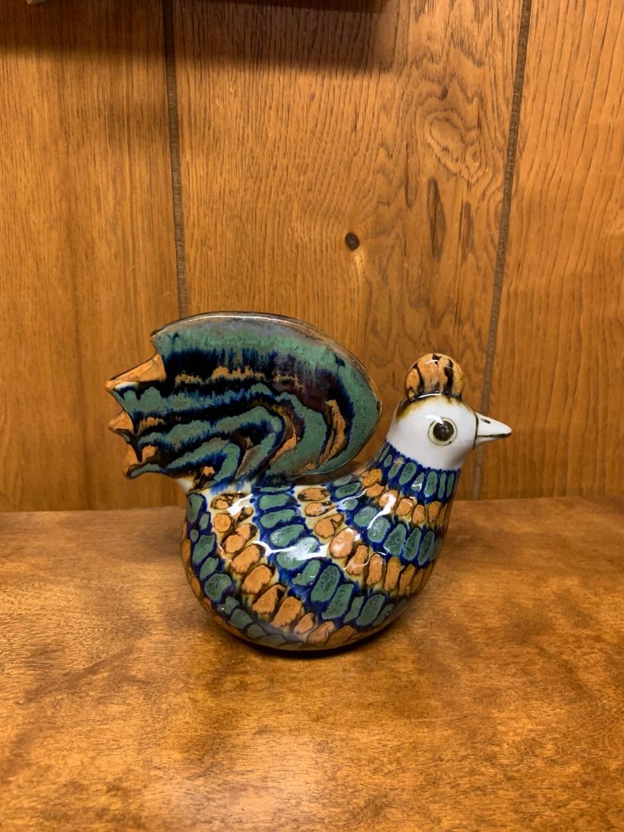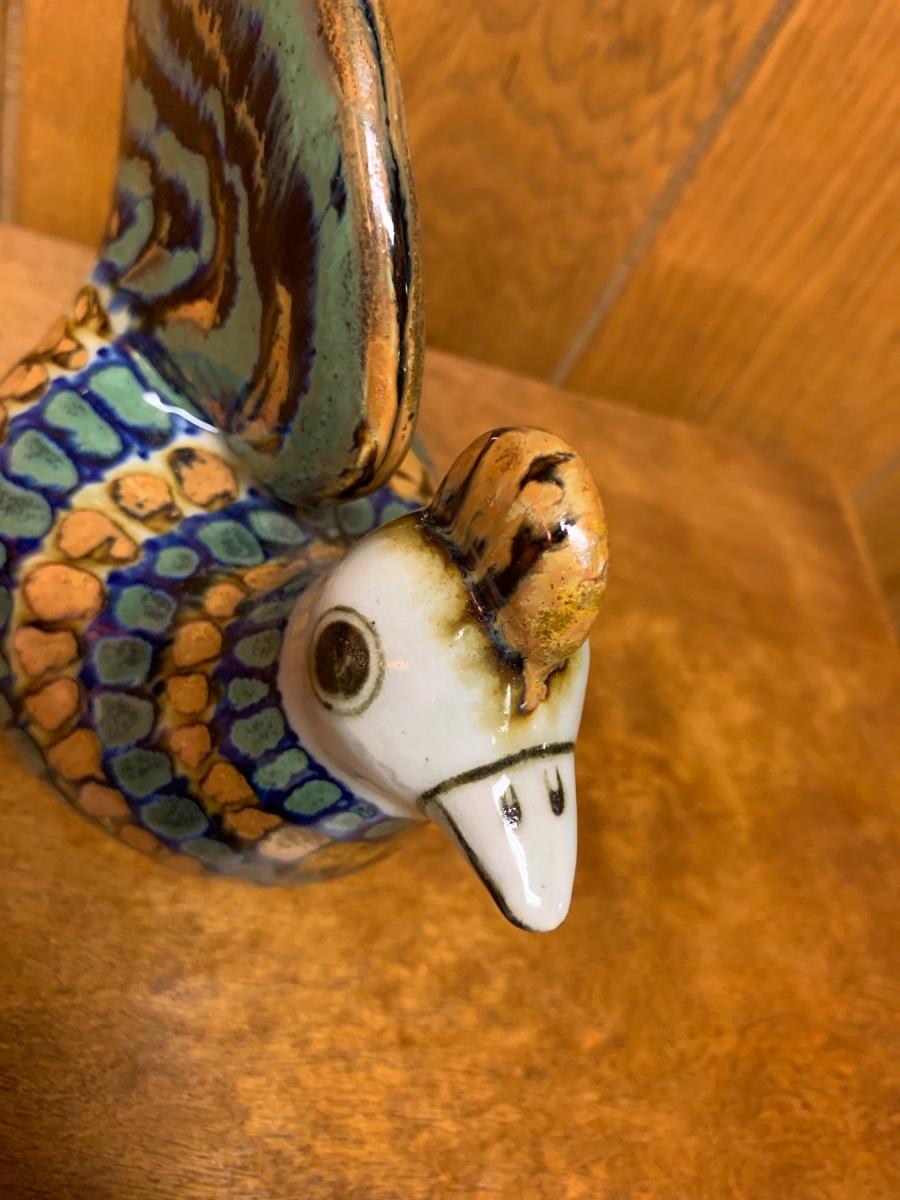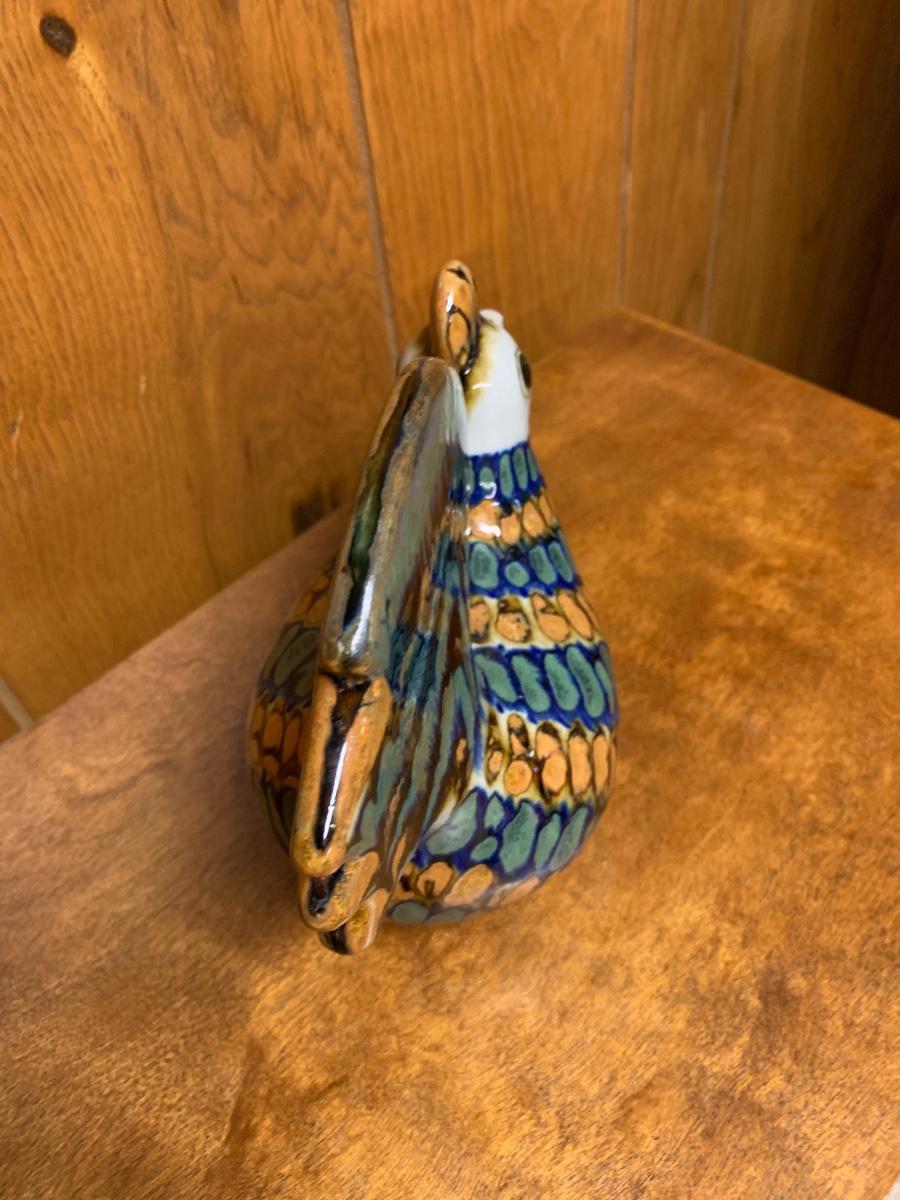 Fun Mexican pottery bird, brown, blue, and white, Folk Art bird