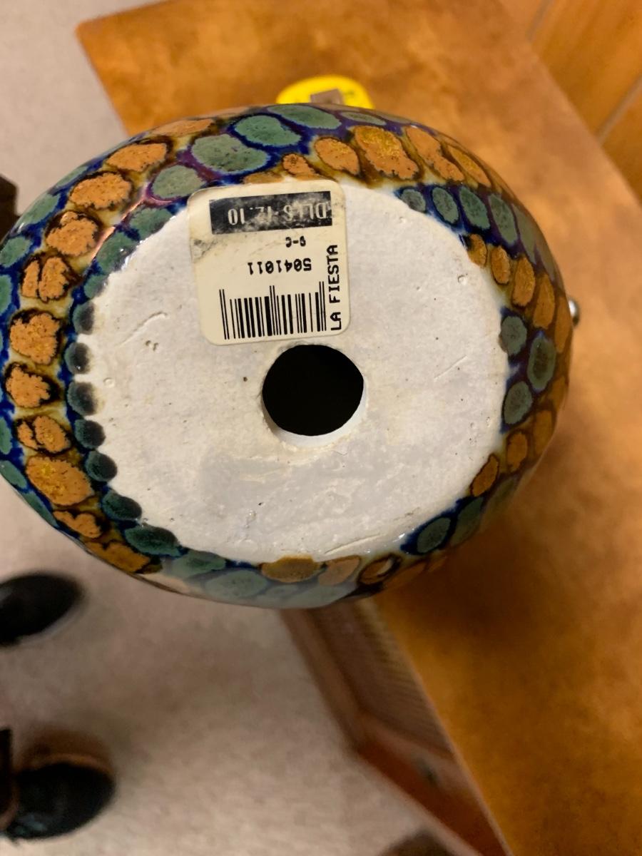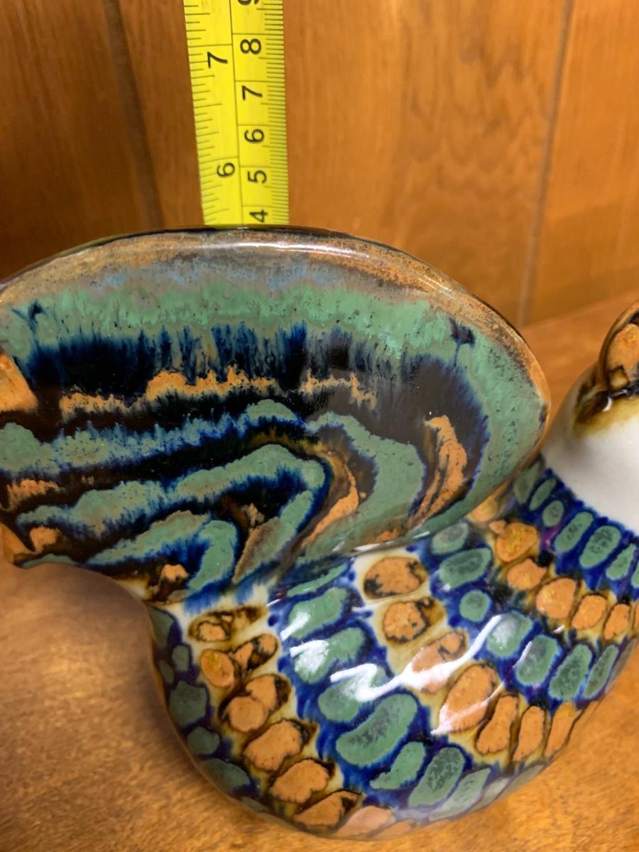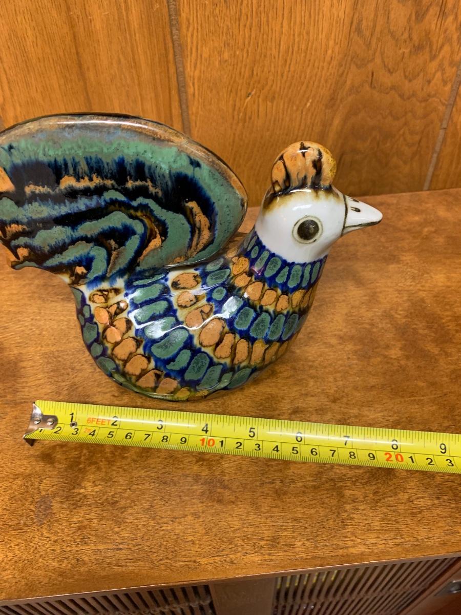 Fun Mexican pottery bird, brown, blue, and white, Folk Art bird