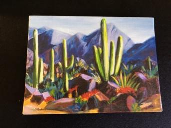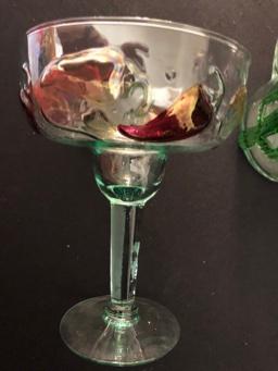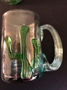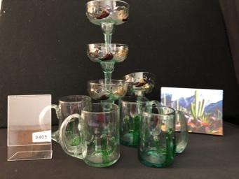Lot of Four Mexican Glass Cactus Beer Mugs & Four Hot Pepper Margarita Glasses & Dana Madras Print