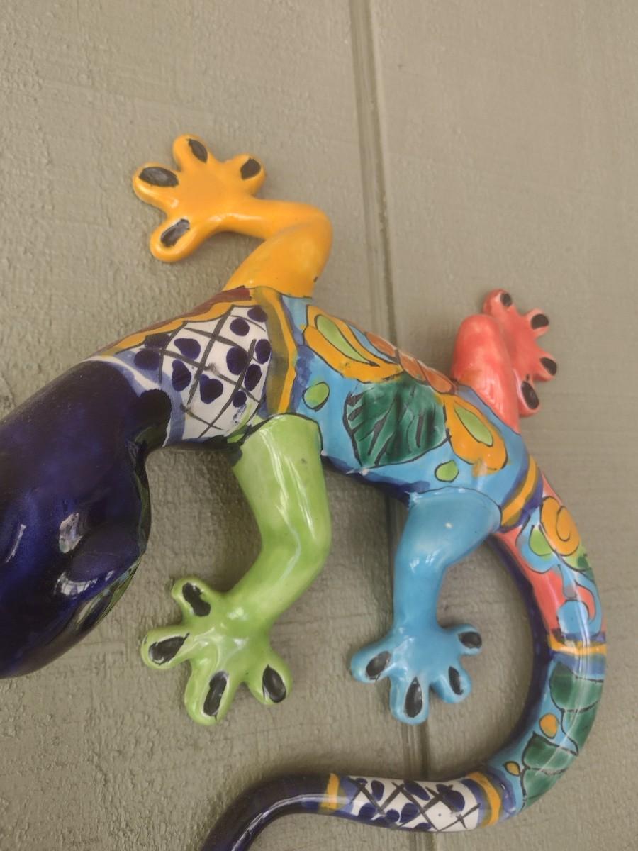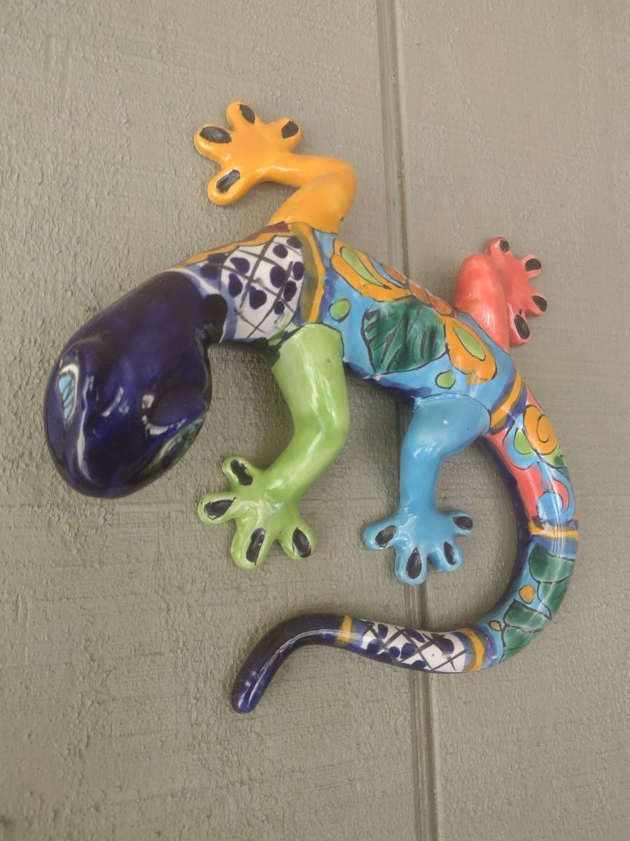 Mexican Hand Painted Terracotta Salamander Lizard Wall Art