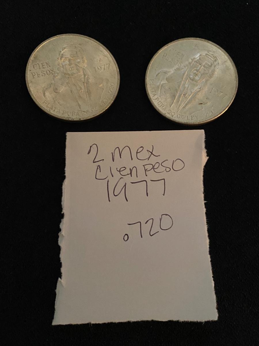 2 Mexican Cien Peso Coins 1977 .720 Silver