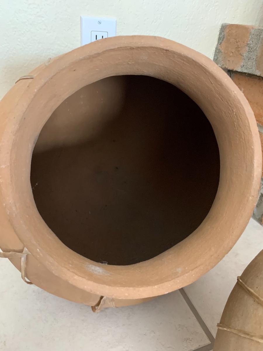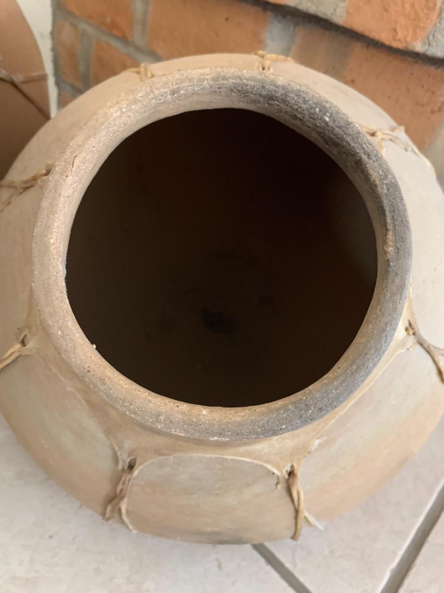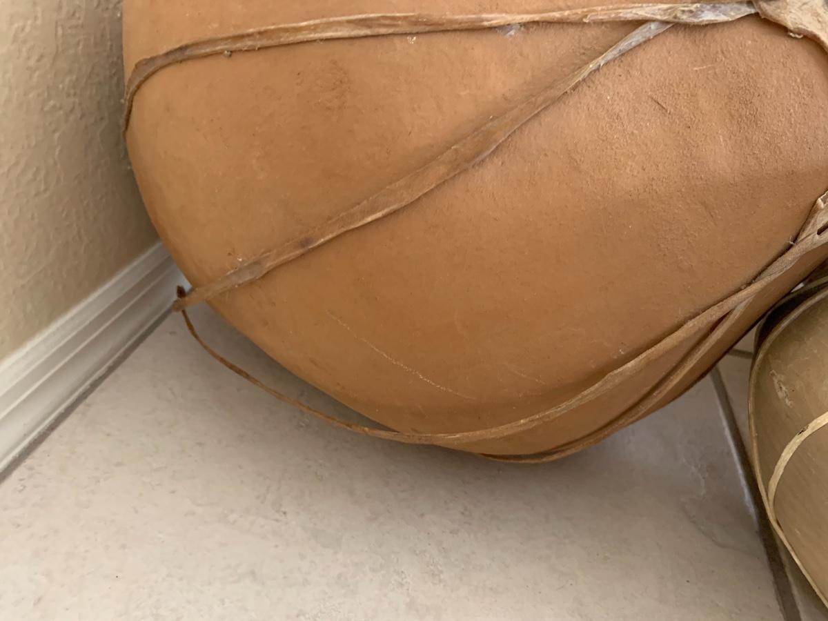 3 piece Mexican pottery with raw hide straps all in great condition