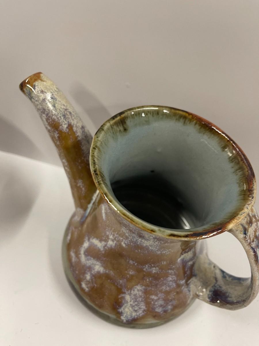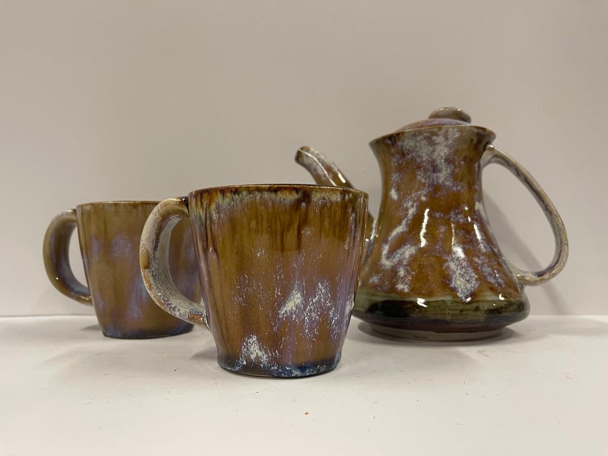 Hand made Mexican pottery coffee pot with pair of matching mugs. Excellent condition.