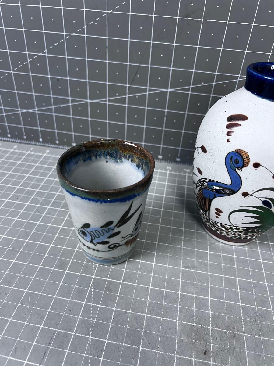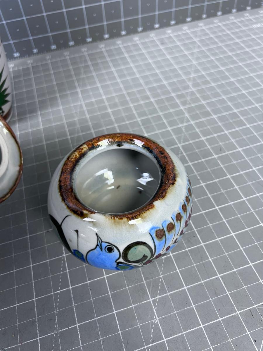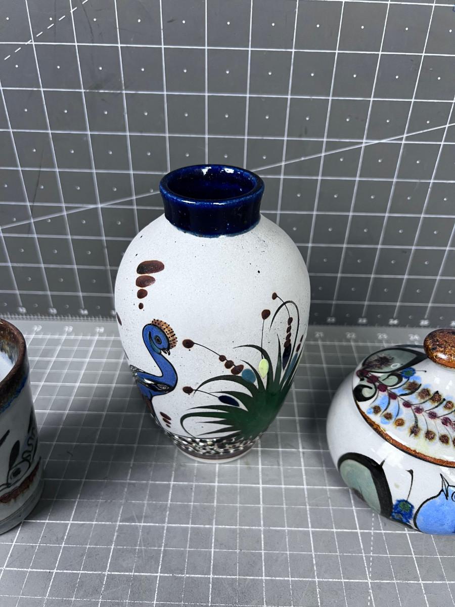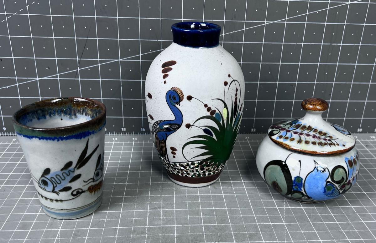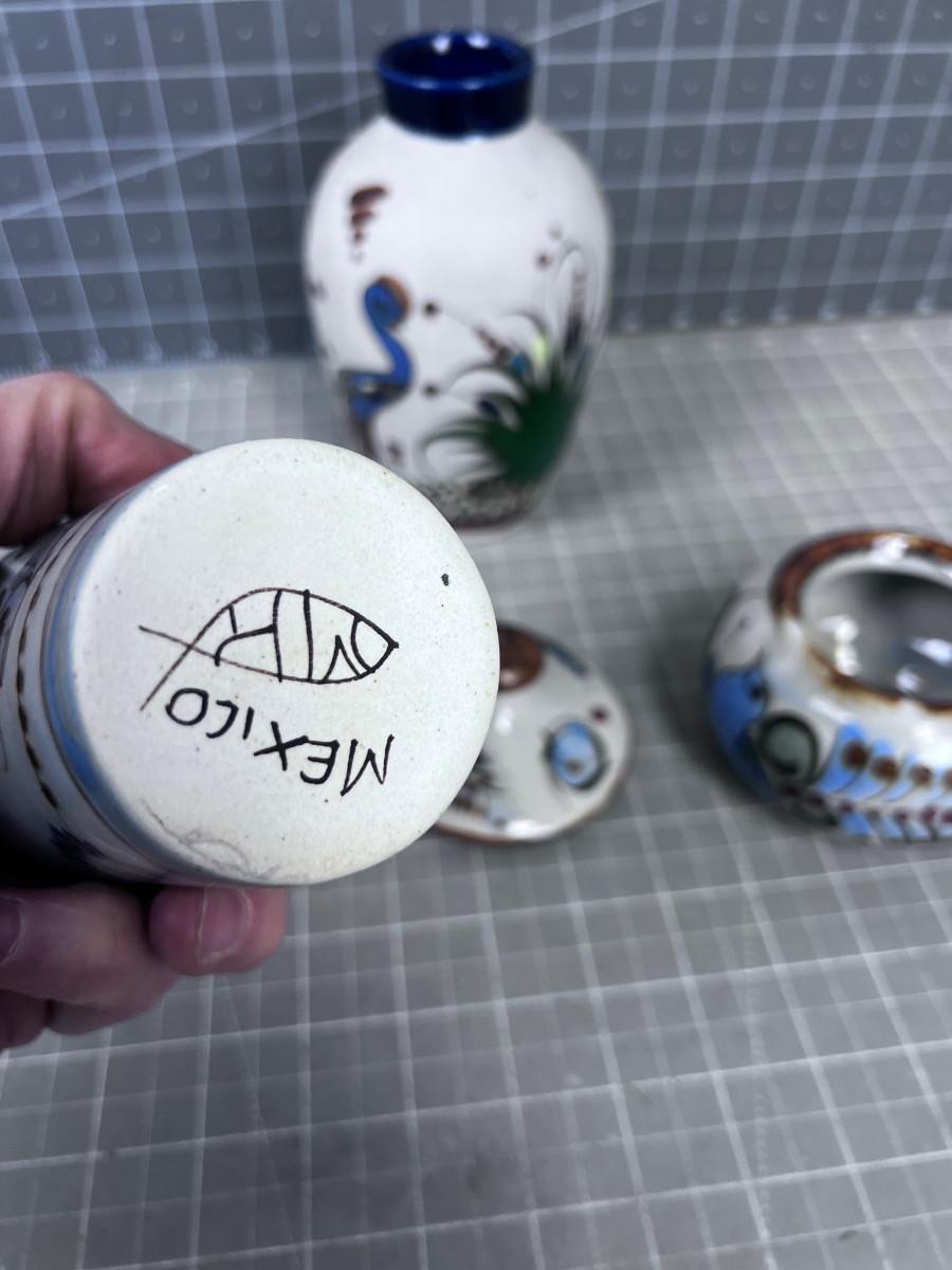 Mexican Pottery Stoneware 3 Pieces, Fishes and Bird