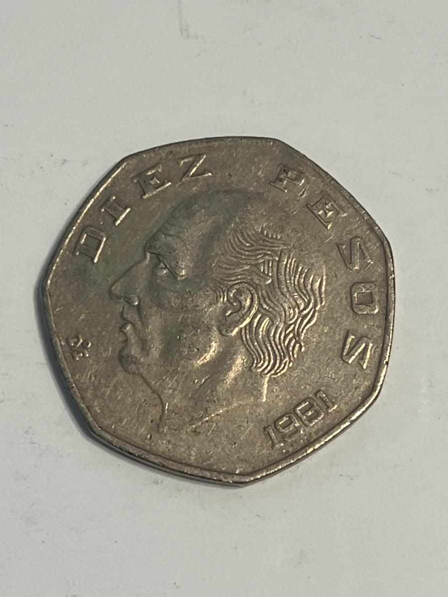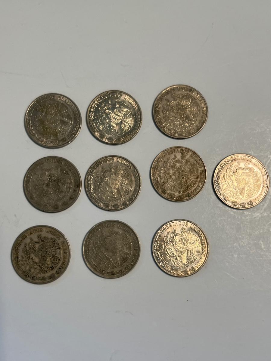 10 peso coins, a 50 peso and 20 peso, two 5 pesos, and a 10 peso. 1980’s.