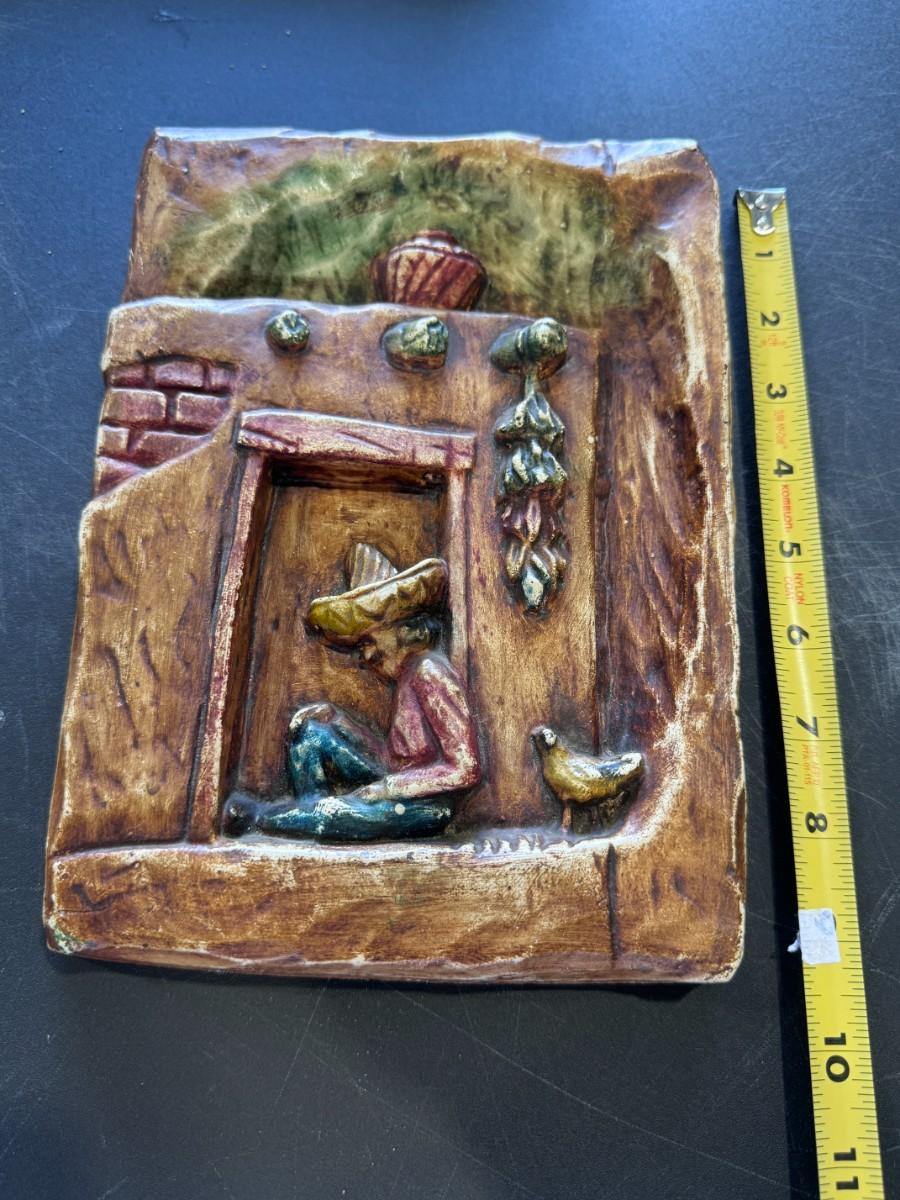 Mexican Talavera pottery. Vintage Chalkware Mexican Folk 3-D Art Painted Wall Decor