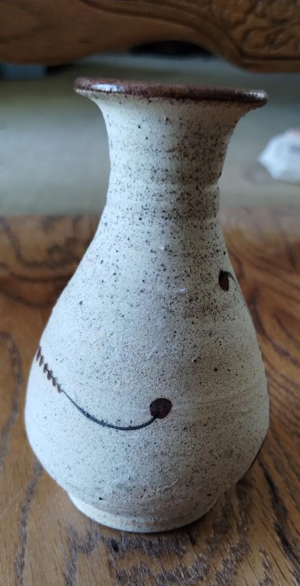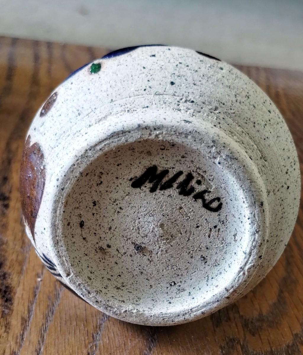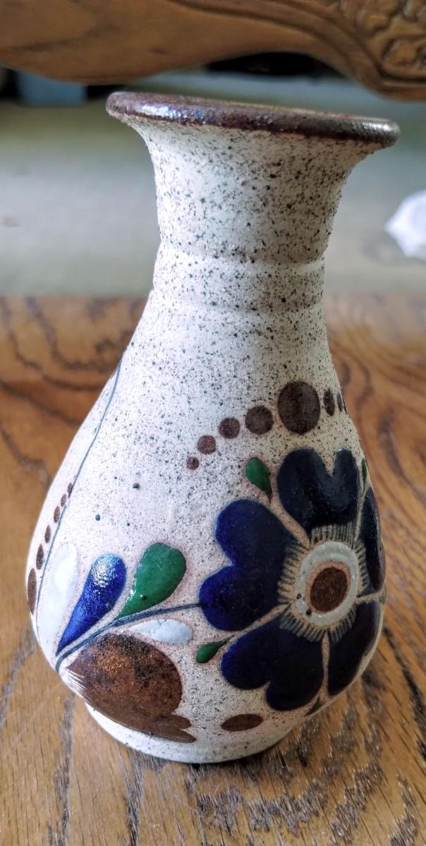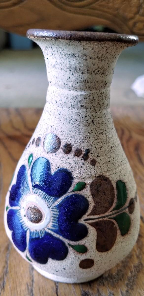 Mexican Tonala Folk Art Pottery Sandstone Vase Hand-Painted Blue Flower