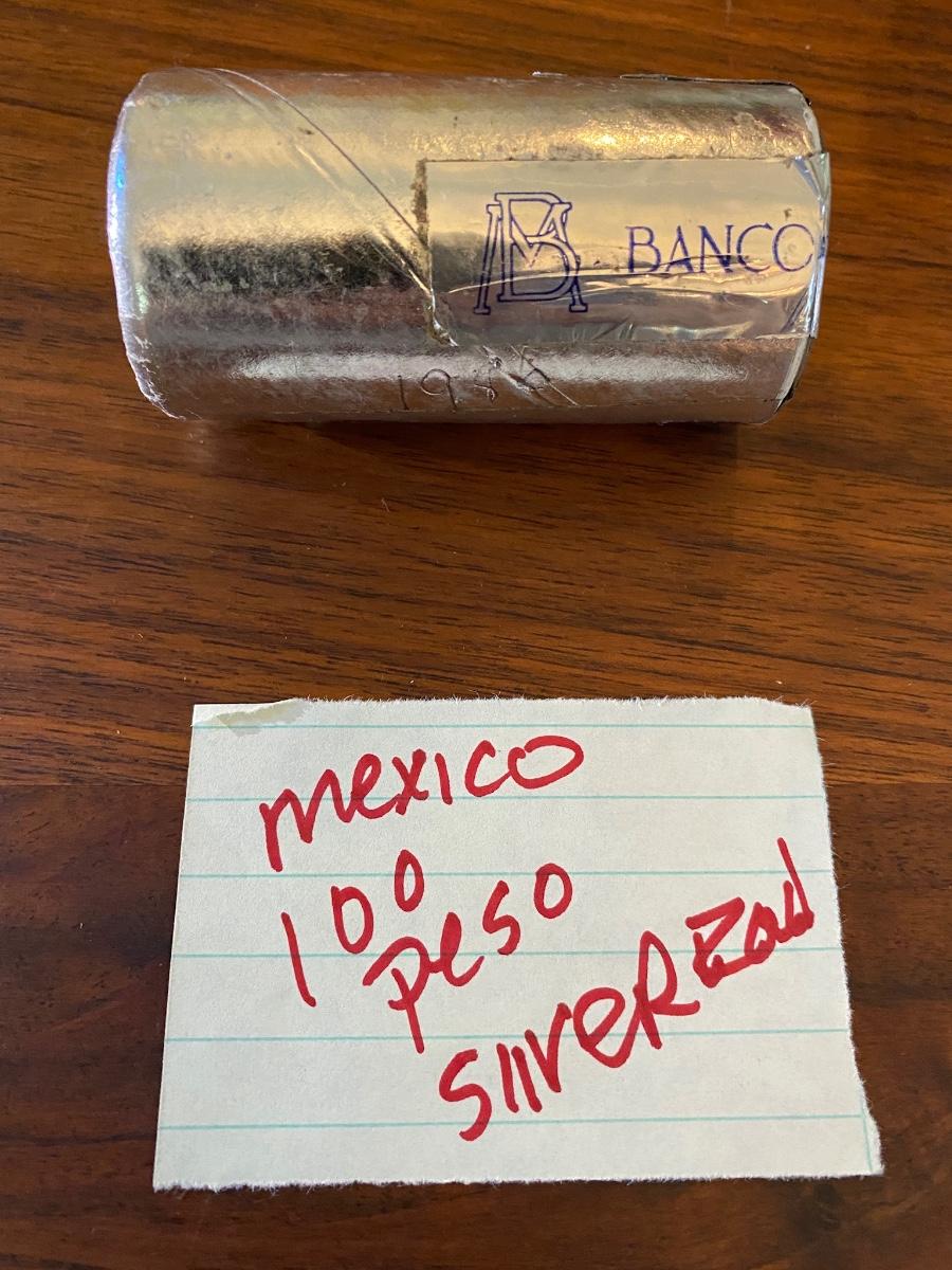 Roll of Mexico 100 Peso .999 Silver Coins As Pictured bancc roll .999 20 marked on side of roll