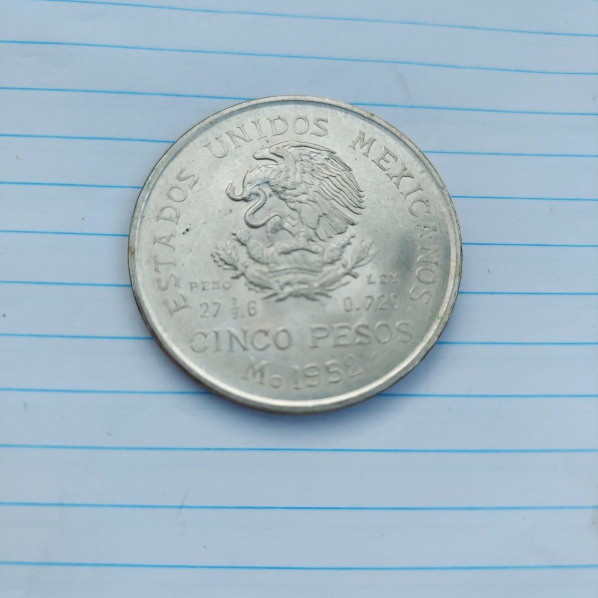 MEXICO 1952 SILVER 5 PESCOS COIN