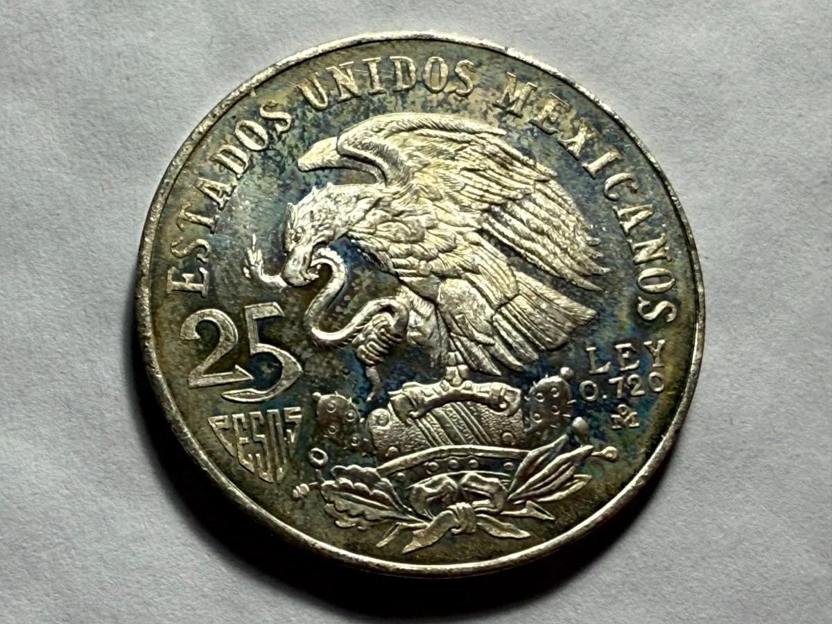 Mexico 1968 Choice Uncirculated Lightly Toned 25 Peso Olympic Silver Coin Contains .5209 Troy oz of actual silver content. (Receive Coin Pictured). $5 DOMESTIC SHIPPING.
