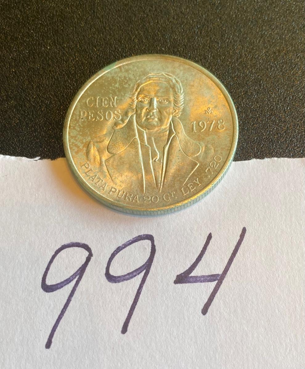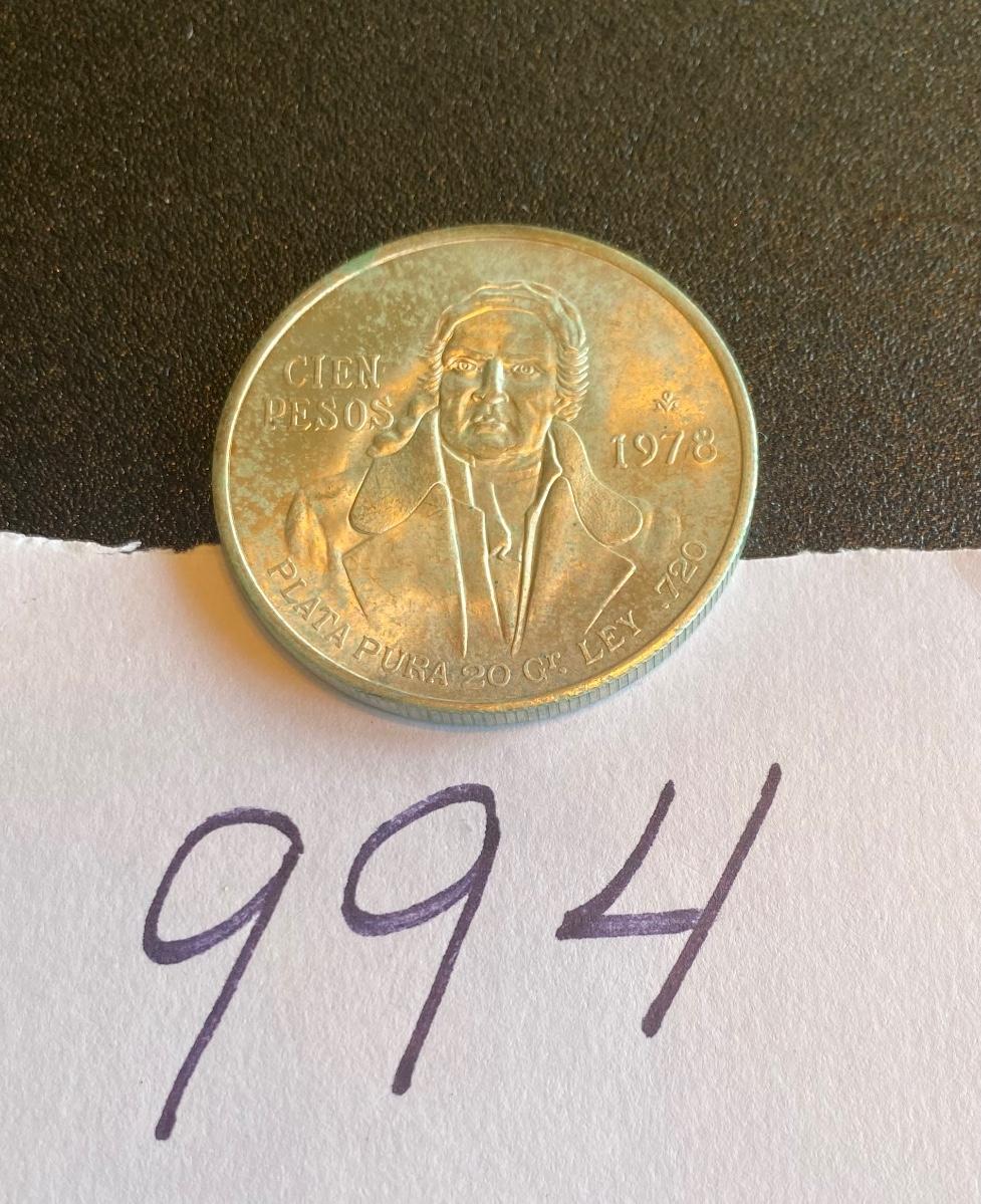 Mexico 1978 100 Peso Silver Coin