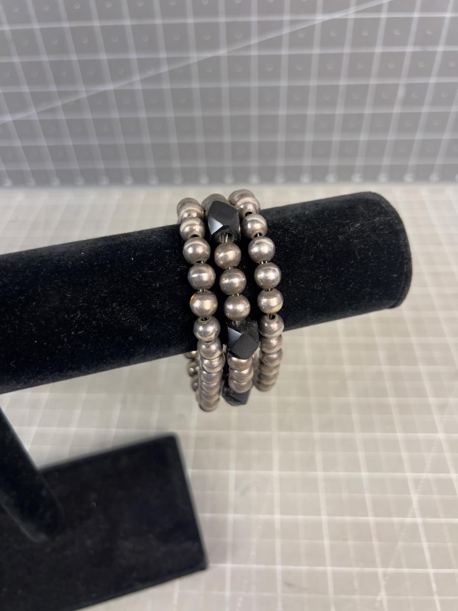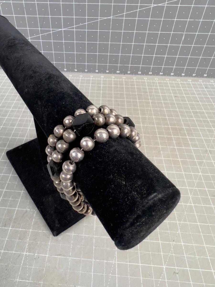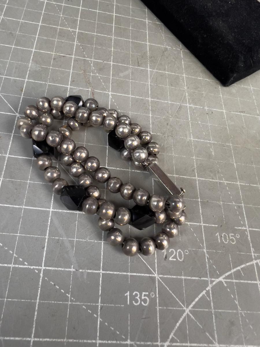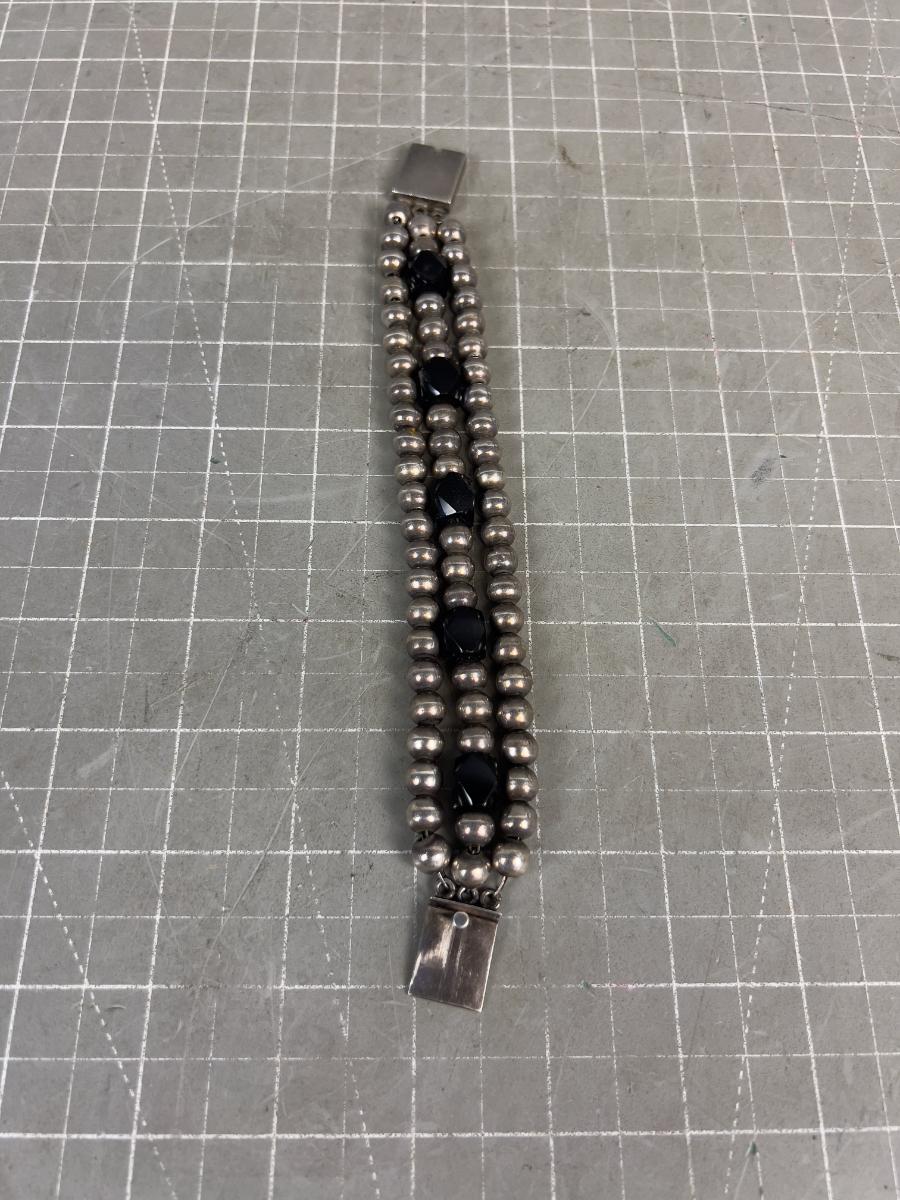 Mexico 925 Silver Bead and Onyx Bracelet