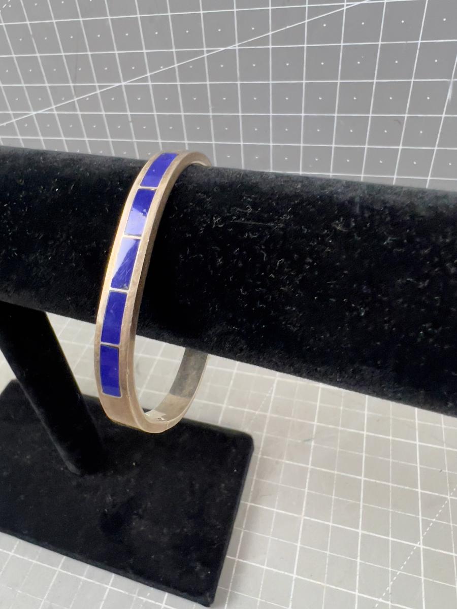 Mexico 925 Silver Bead and Blue Lapis Lazuli  Bracelet