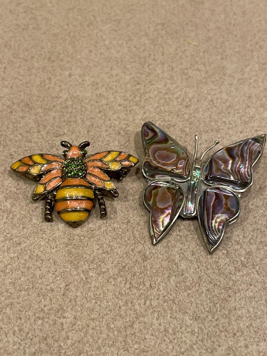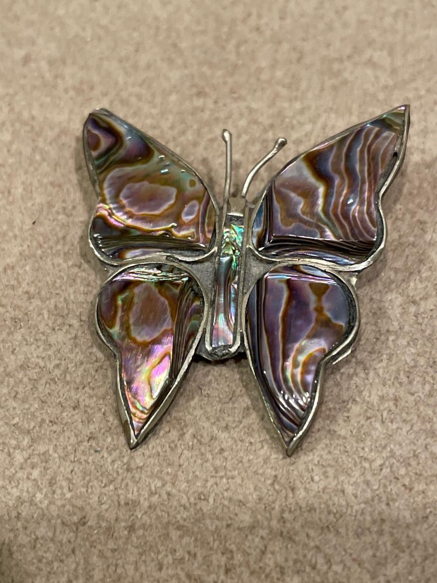 Mexico Alpaca abalone Sterling butterfly brooch and bee