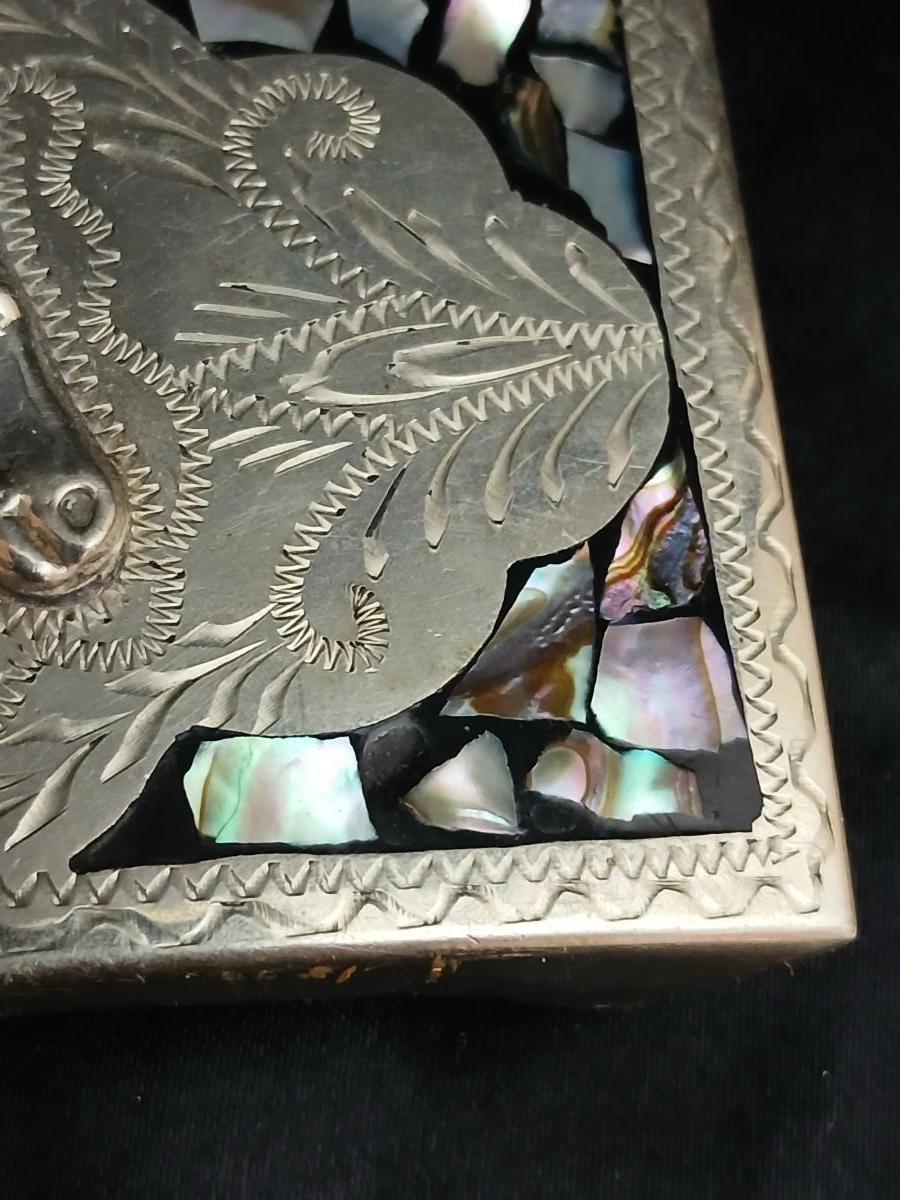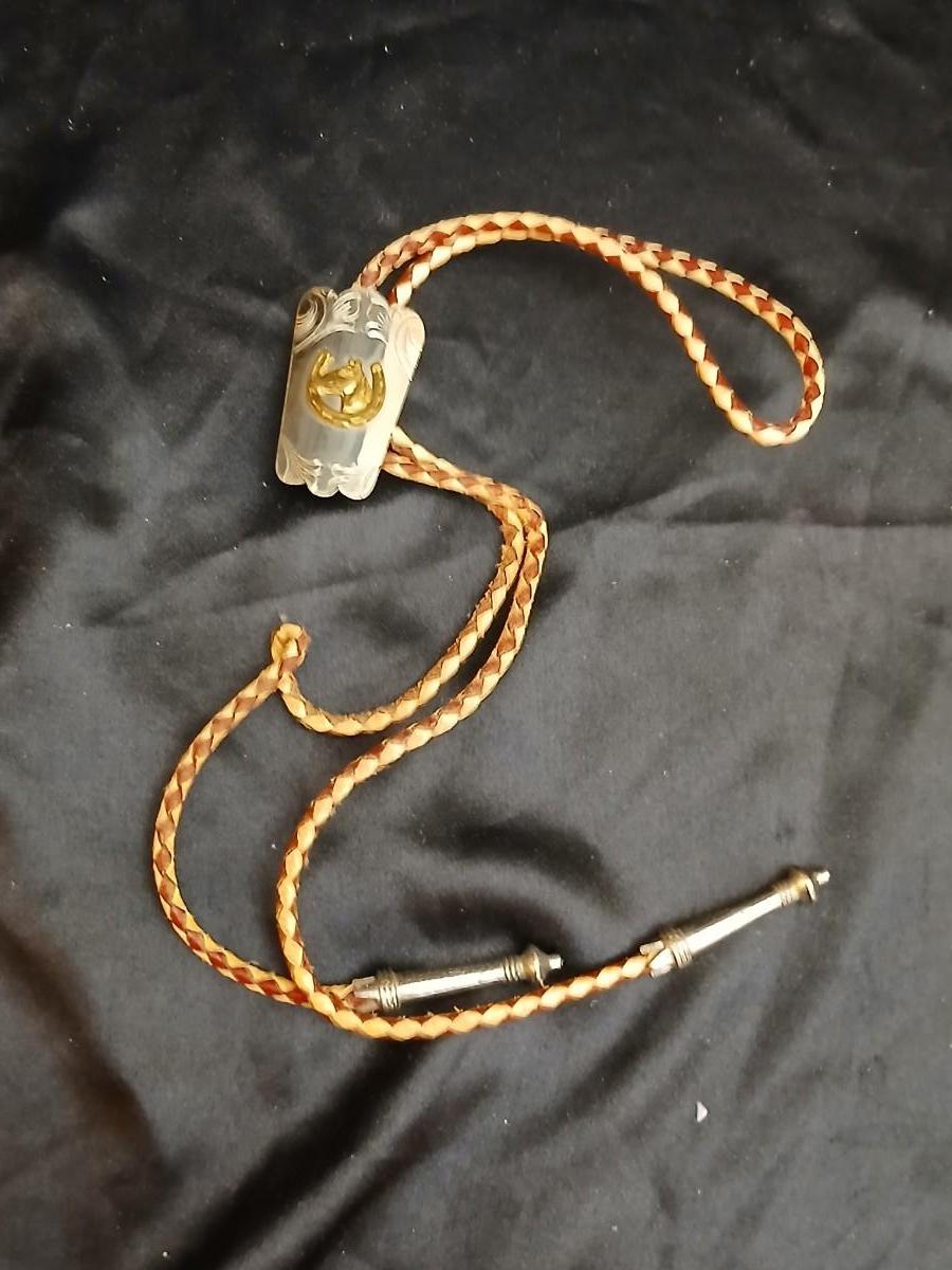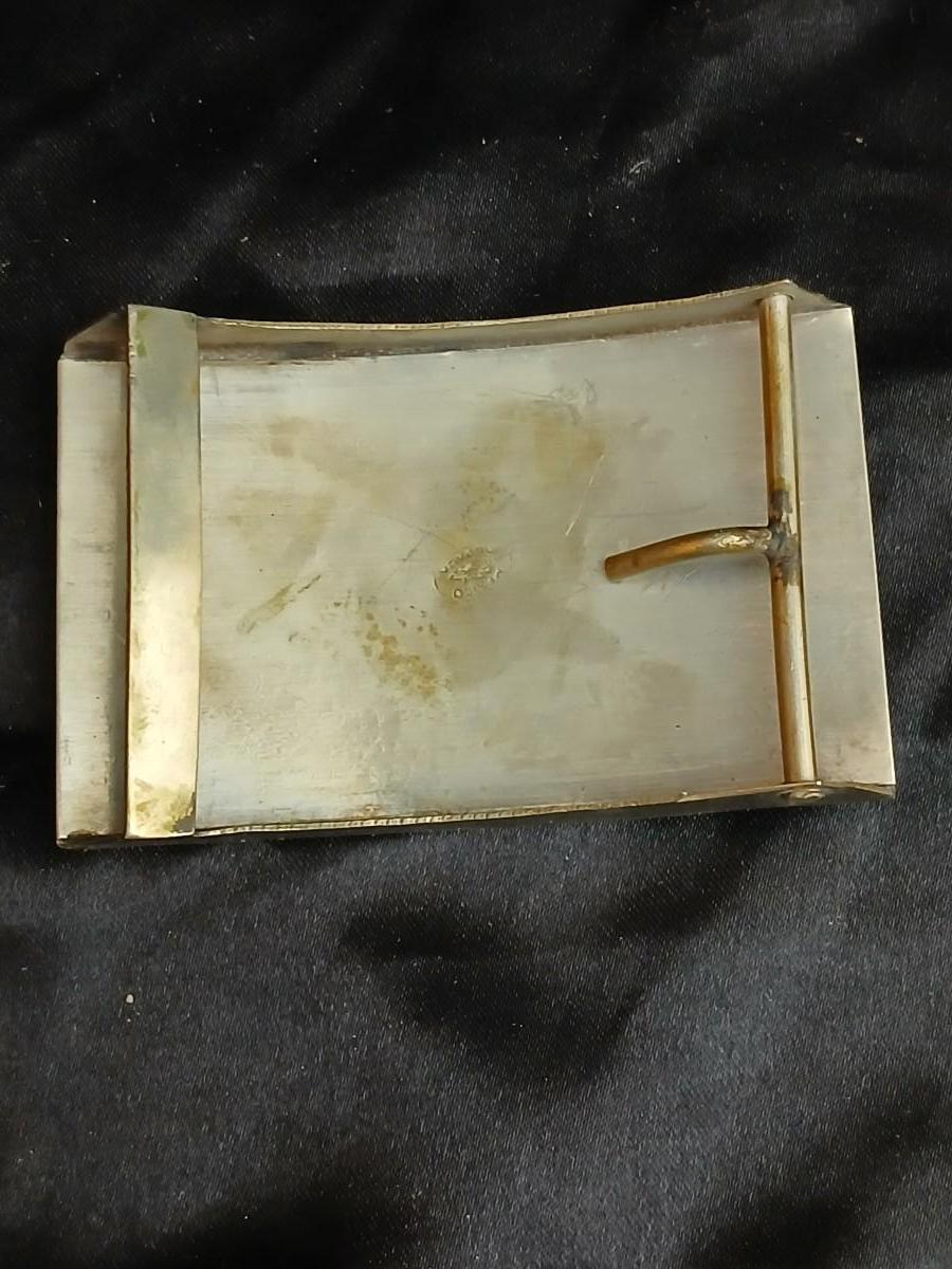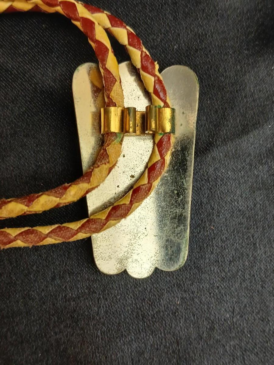 Mexico Alpaca silver toned and abalone inlaid belt buckle featuring a horse head design with a bolo tie clip featuring a horse