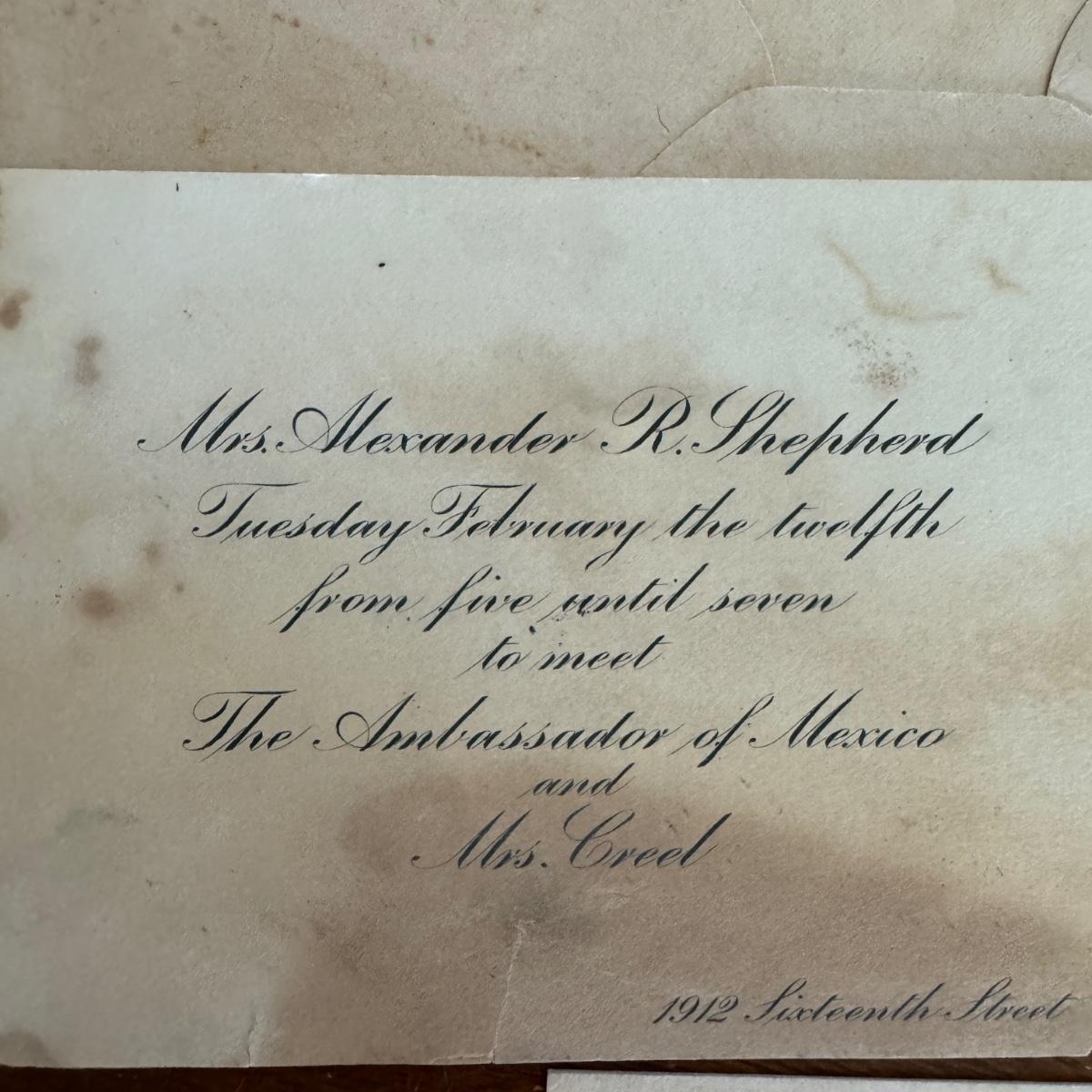 Books, postcards and travel maps from Mexico You’ll find 7 old books about Mexico that include a two volume set called Life In Mexico. Spine has been taped together but papers appear intact. Also includes a Postcard Album with a variety of old Mexican scenes. Find a handful of vintage travel maps and an old invitation from 1912 to meet the Ambassador of Mexico at a formal event. Shipping available.