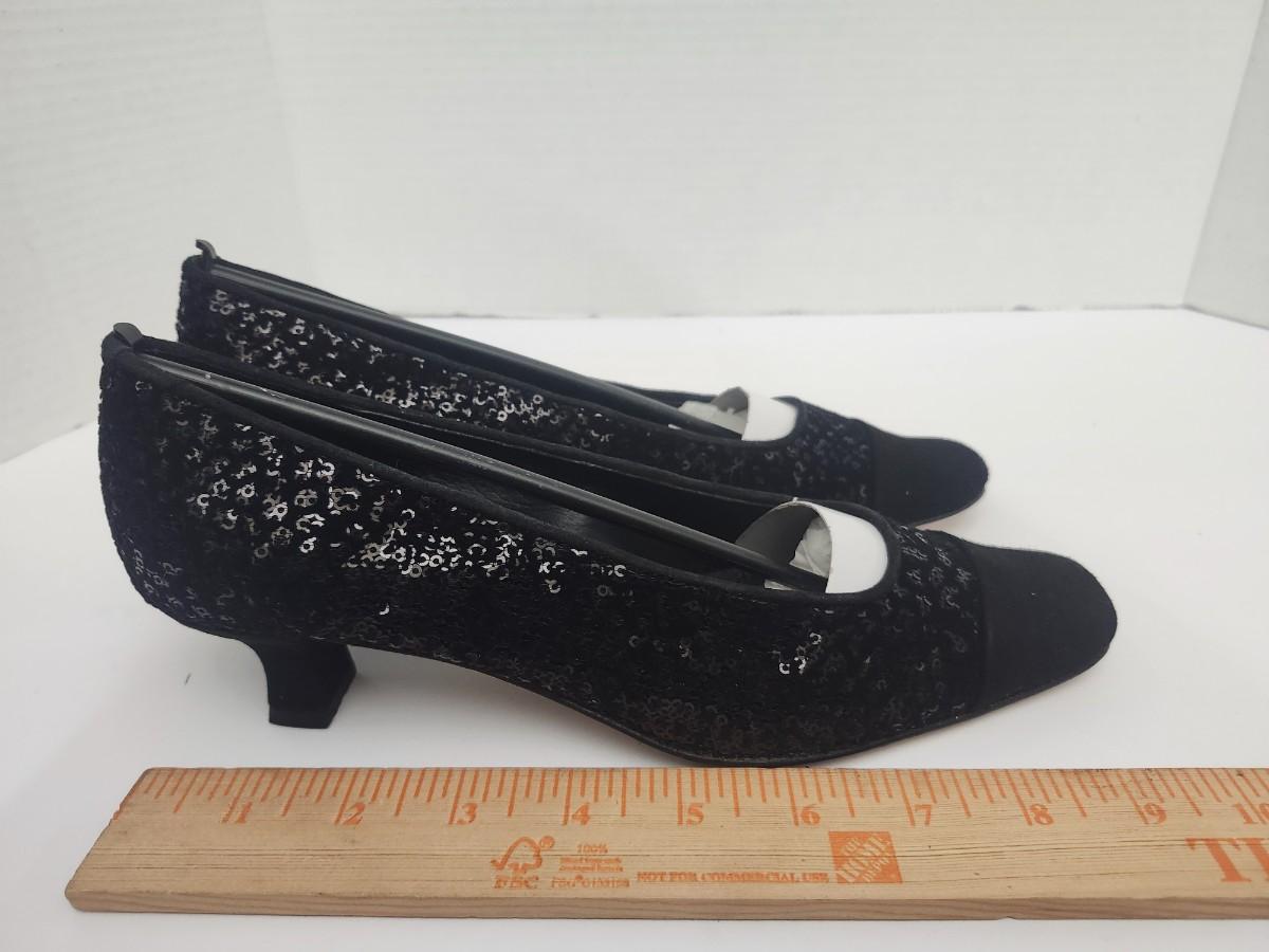 Mezzo by Vaneli Rickie Black Velvisde Slip On Heels Womens Size 6 1/2 M With Box