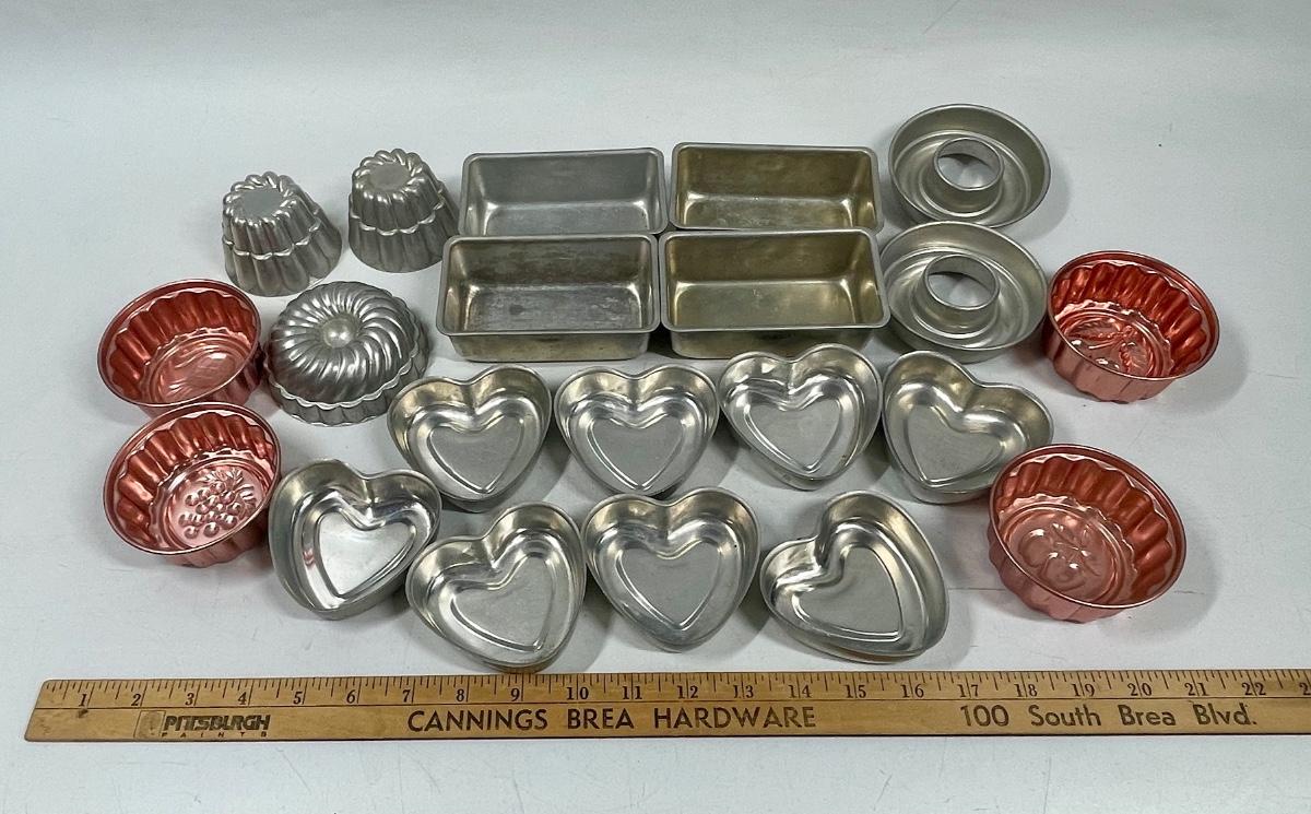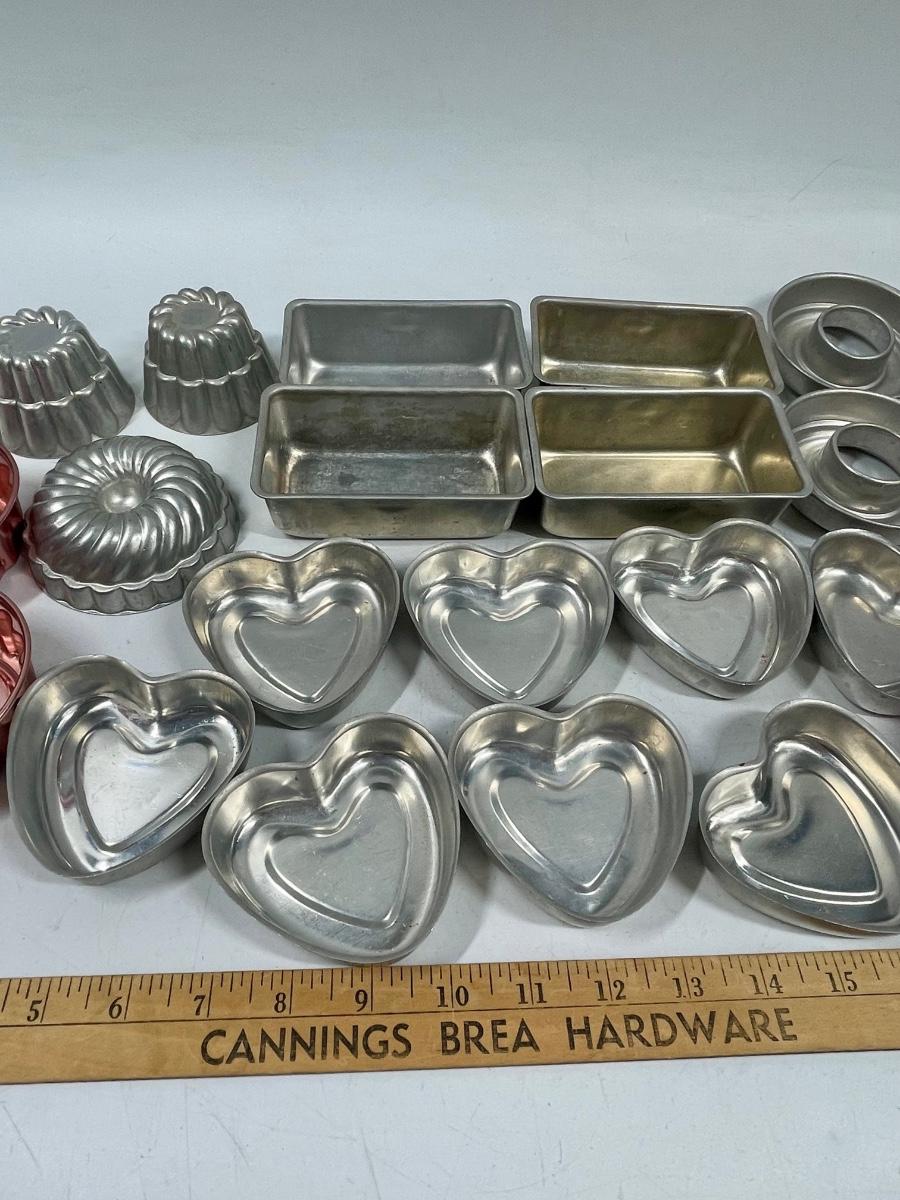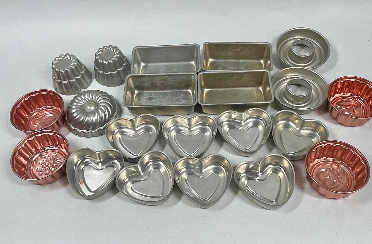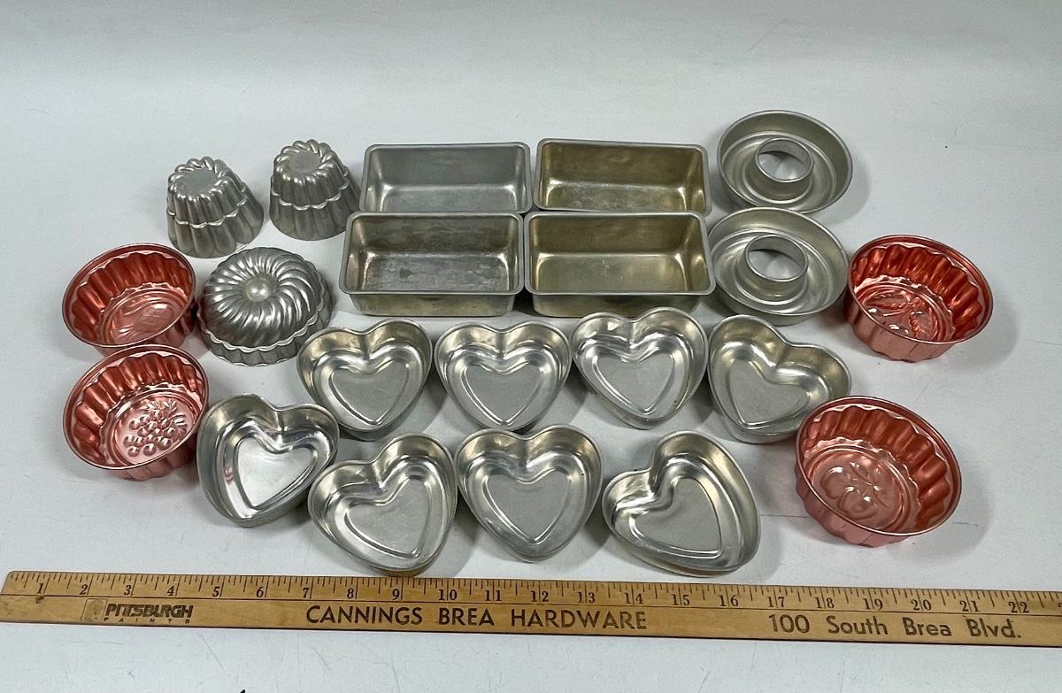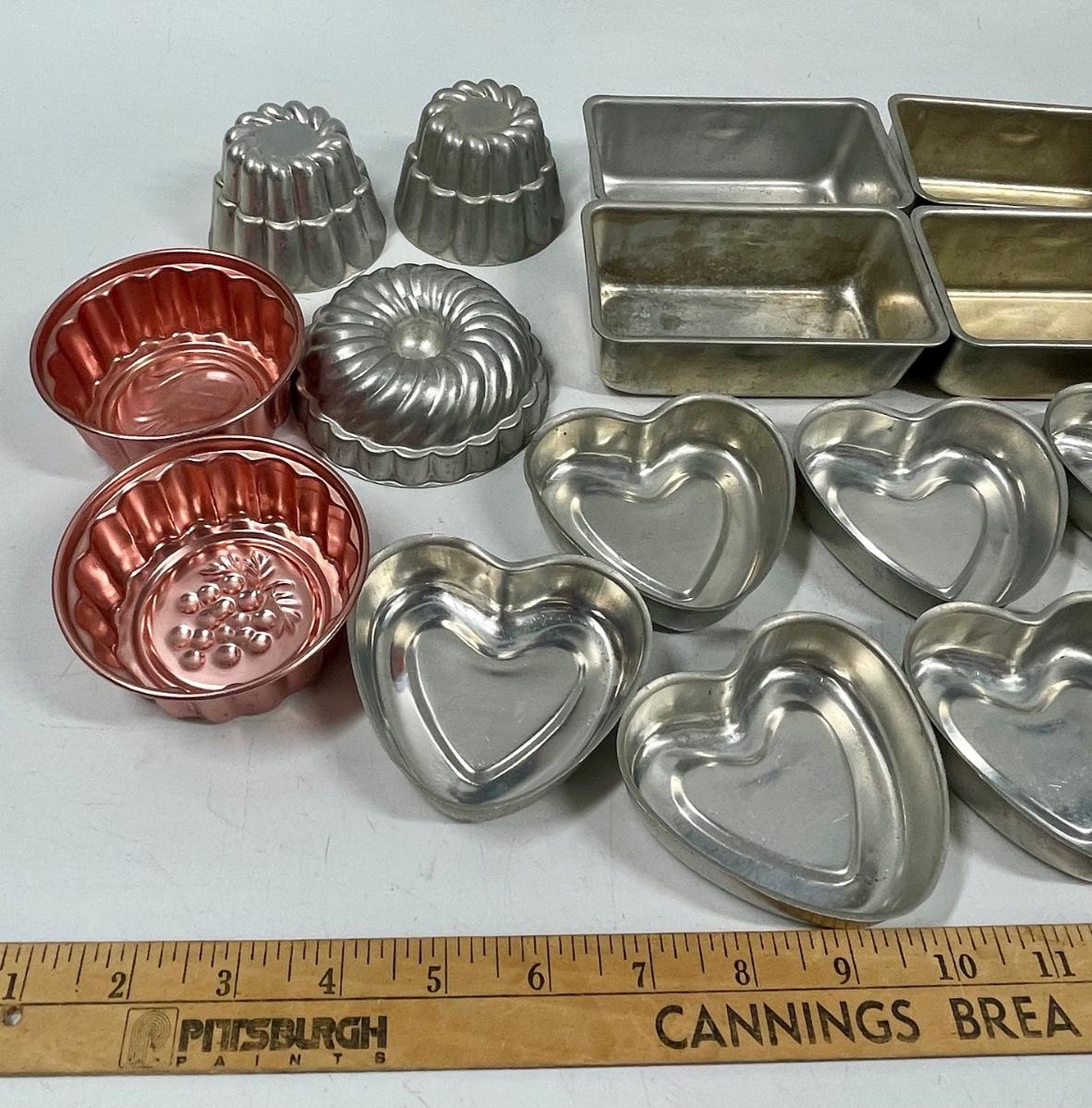 Mini baking & jello mold pans - heart shaped, mini bread loaf pans, mini jello pans aluminum & copper