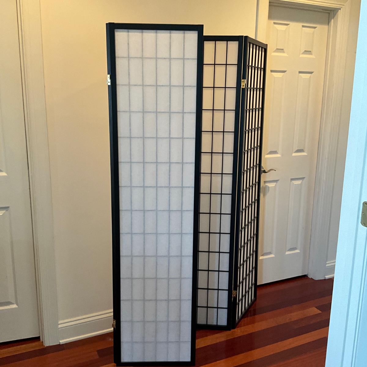 Measuring 70.5" high with four panels measuring 17.25" wide (x4) back side is solid paper