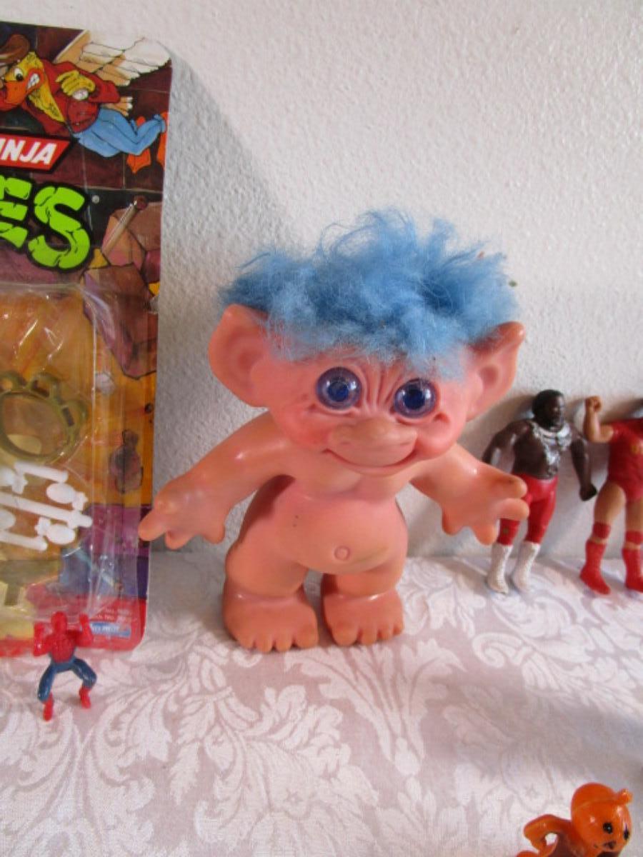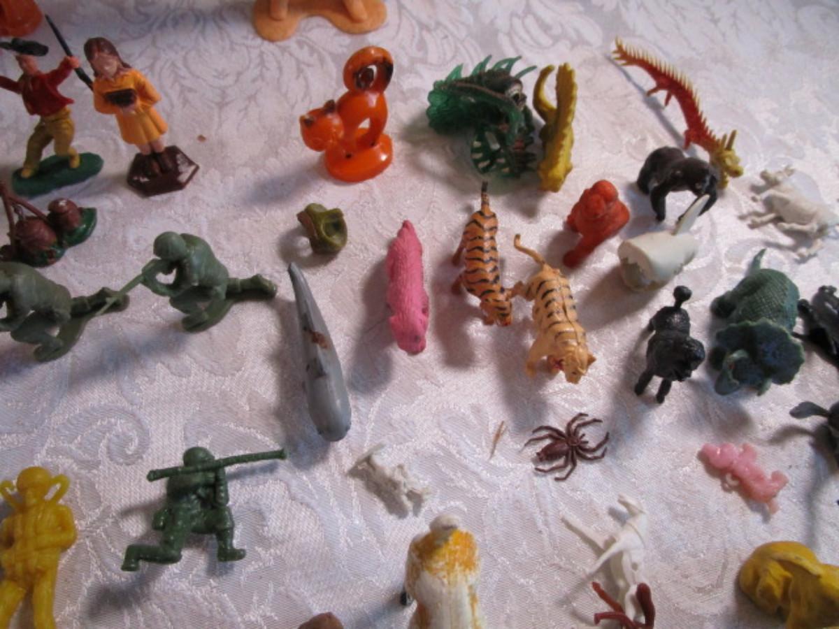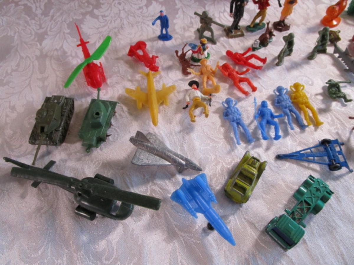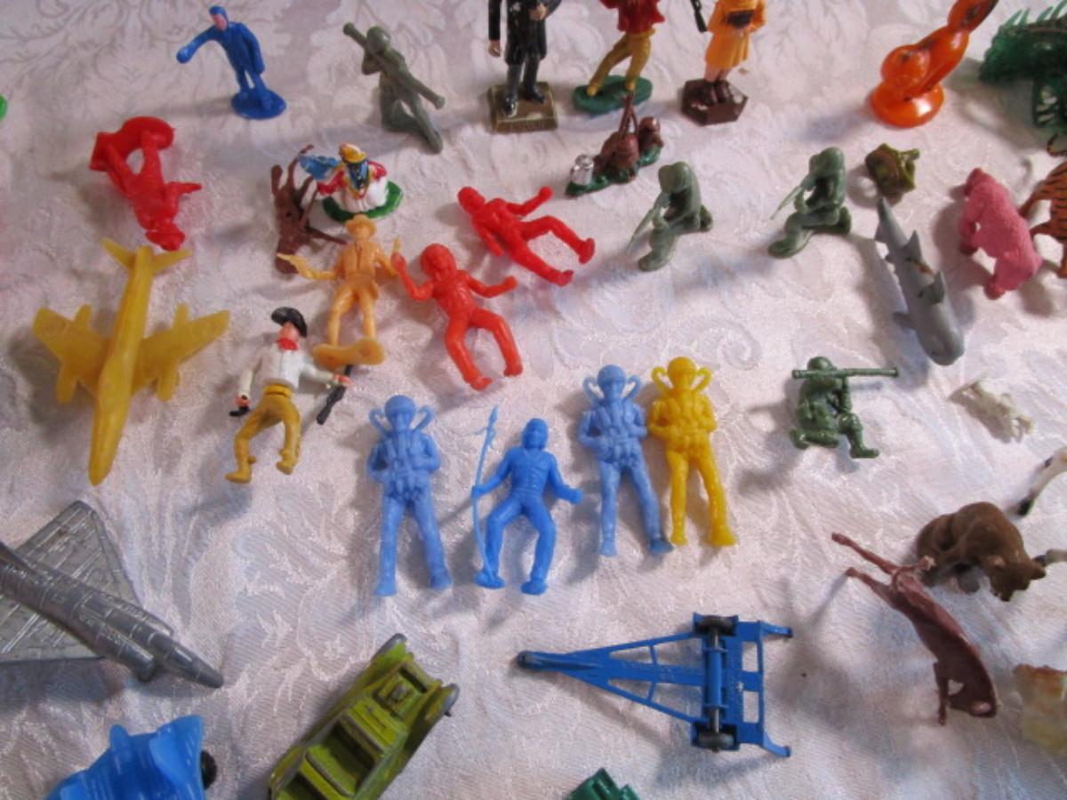Ninja Turtles figure, troll bank, Batman figure, army men, cowboys & Indians, wrestler figures, tanks, etc. - G