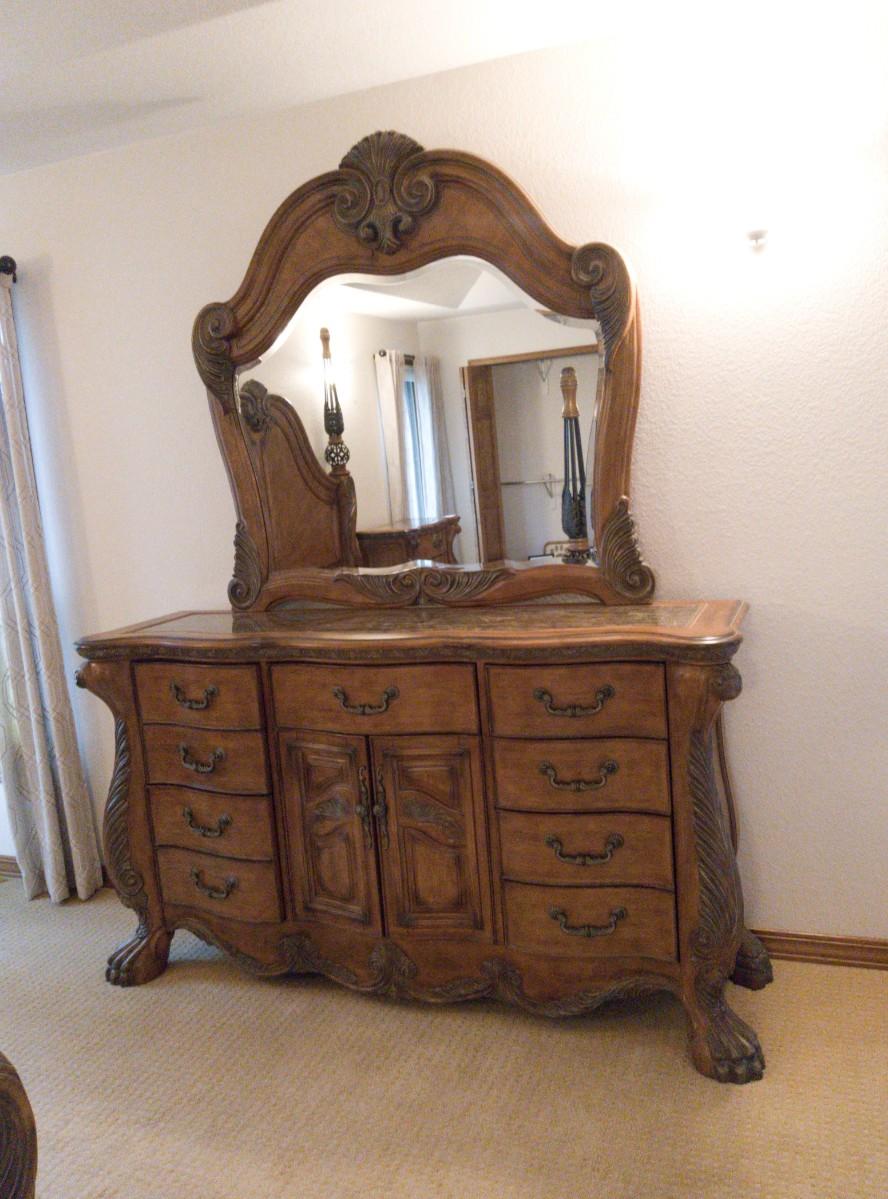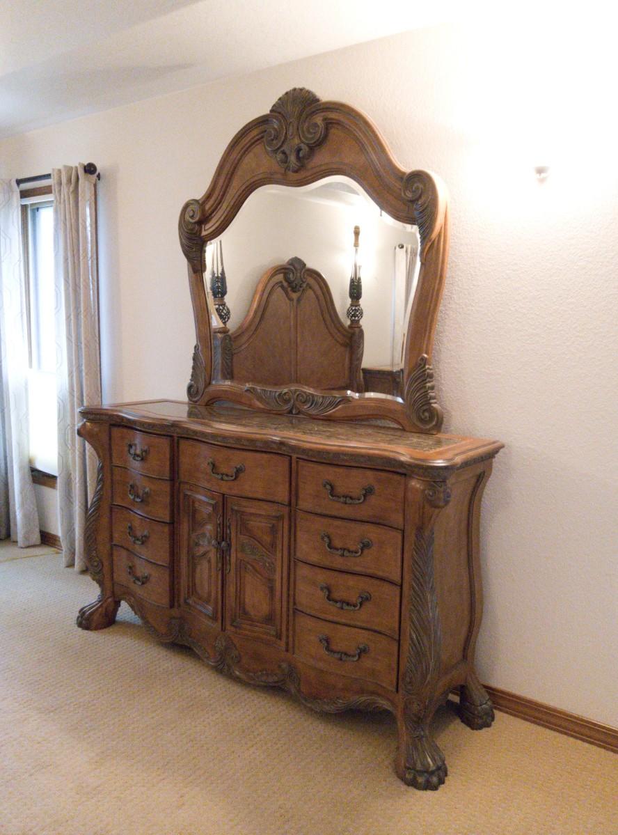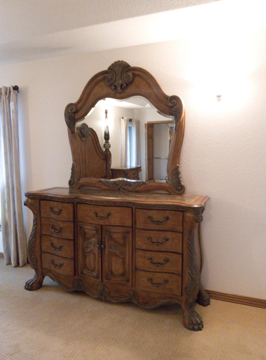 DRESSER IS 71" X 19" X 40" MIRROR IS 52" X 50"