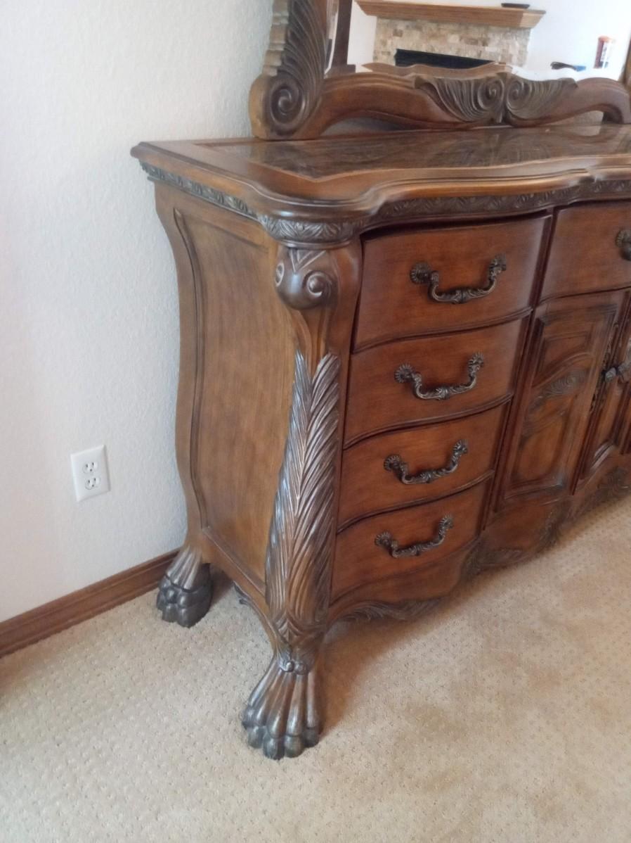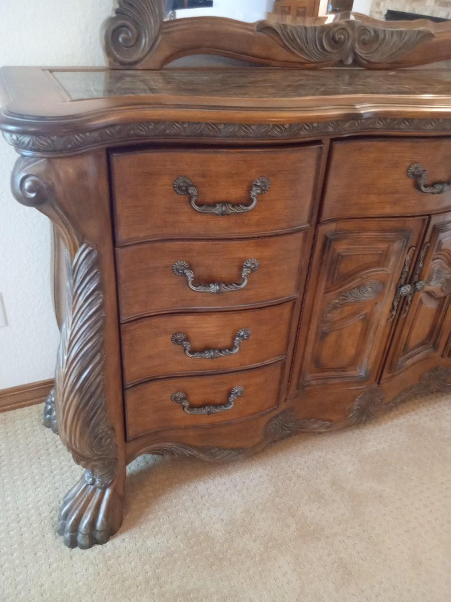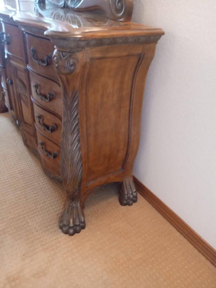 DRESSER IS 71" X 19" X 40" MIRROR IS 52" X 50"