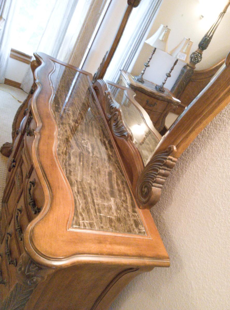 MICHAEL AMINI 9 DRAWER MARBLE TOP DRESSER WITH BEVELED MIRROR