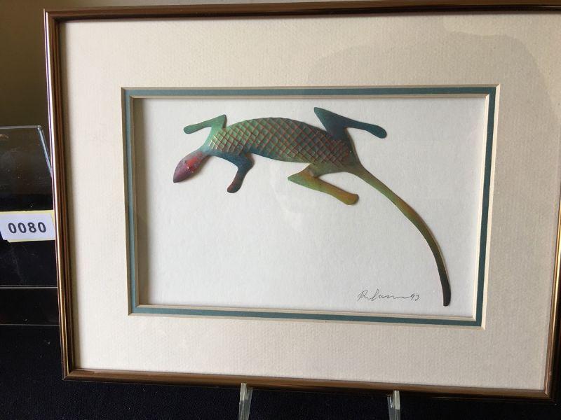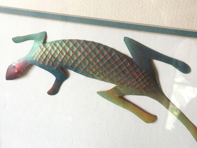 Michael Anton Bruckdorfer dimensional copper gecko artwork Framed and Inhabited