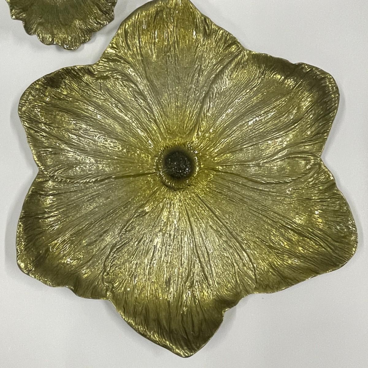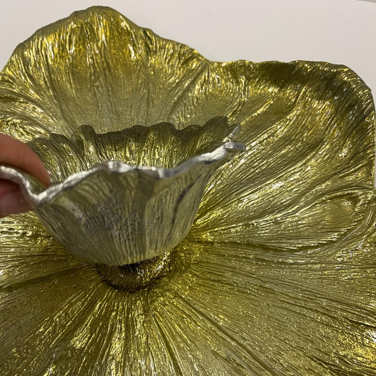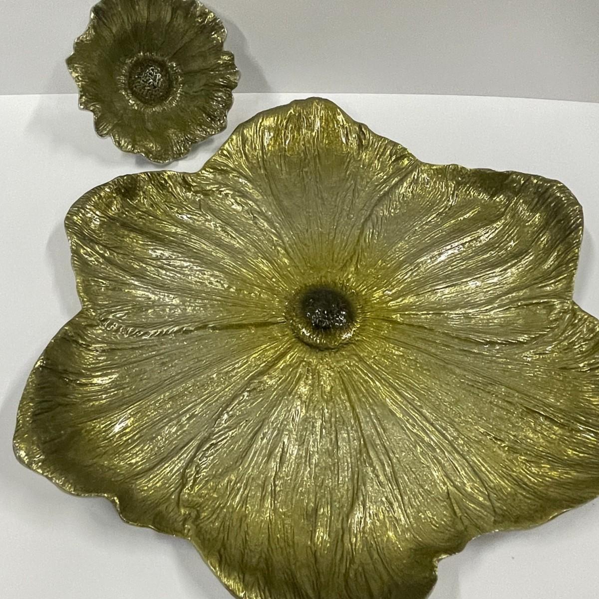 Michael Aram Flower Serving Platter with Matching Bowl. Platter is enamel on metal and is 15 3/4", bowl is 5". Marked Aram on the underside.