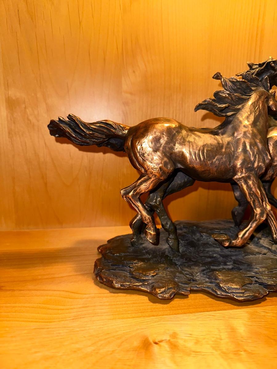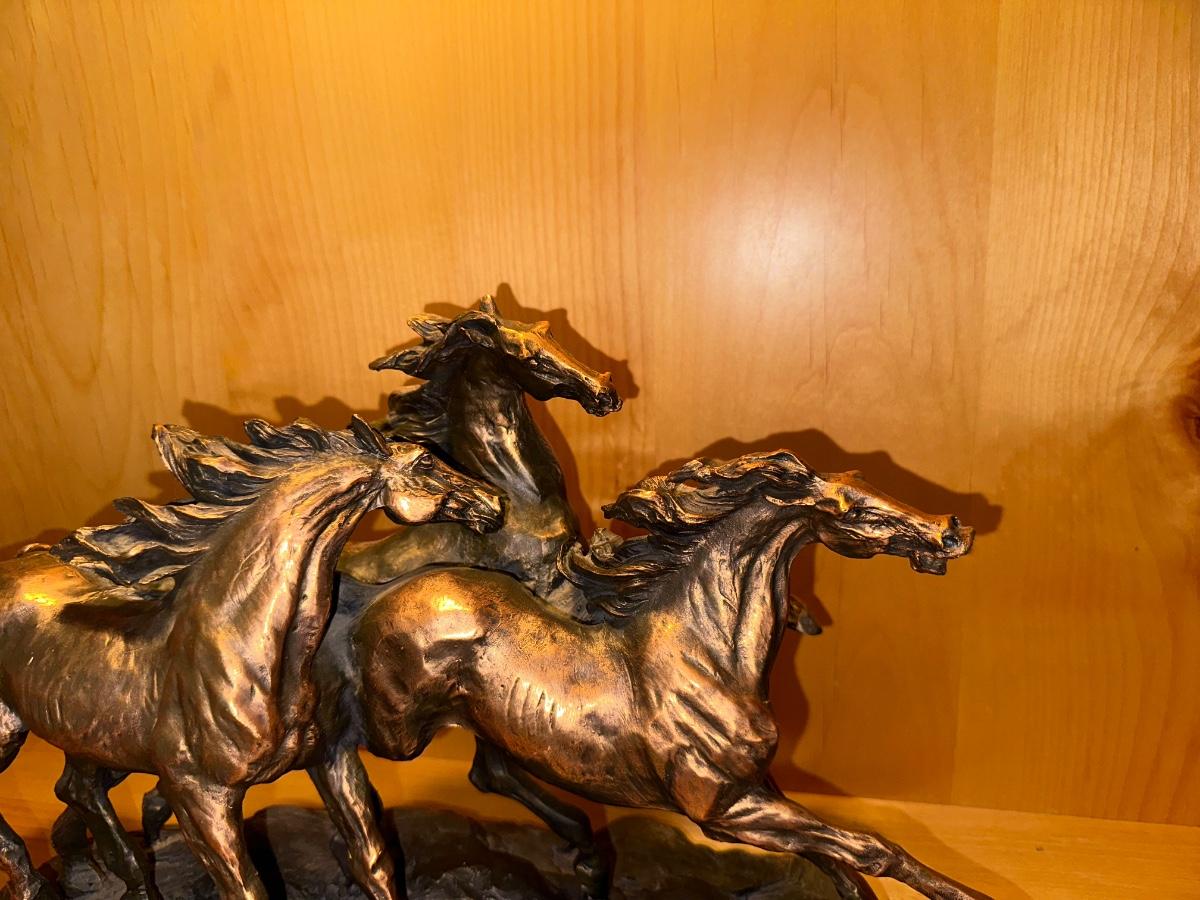 Horse statue measures 16” Long, Horse statue does have a piece of the tail broken off the back. Not visible from the front. See pictures.