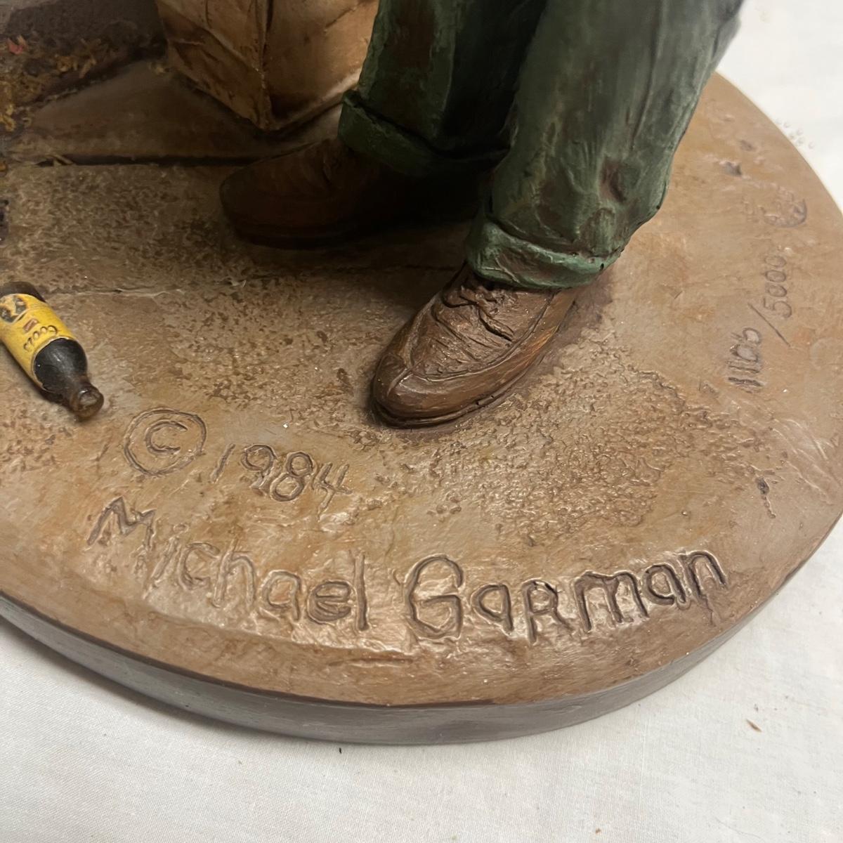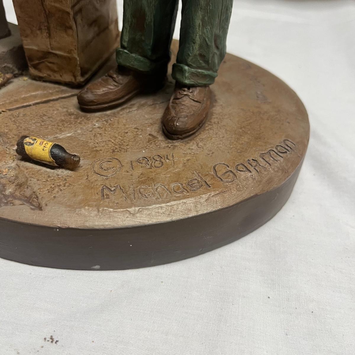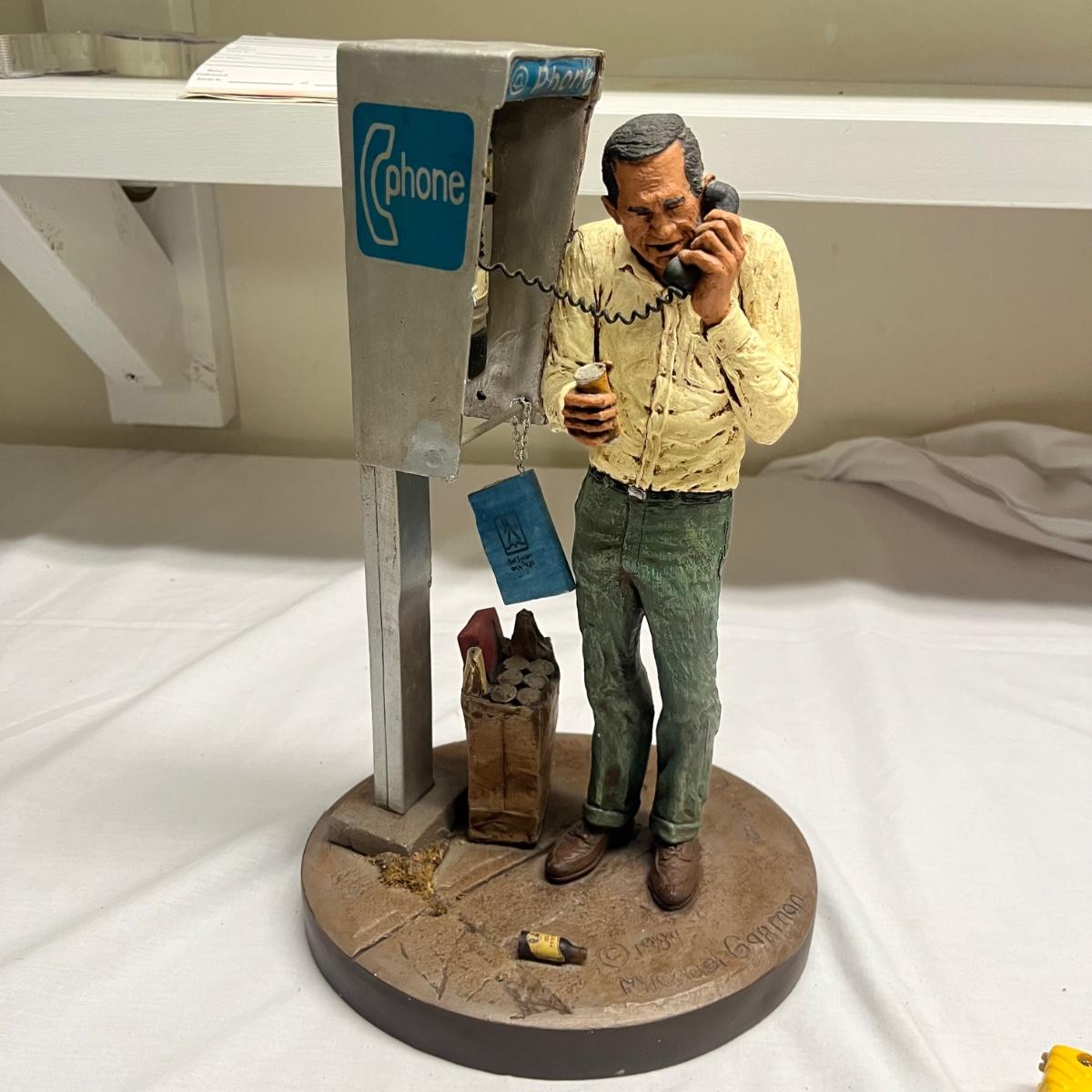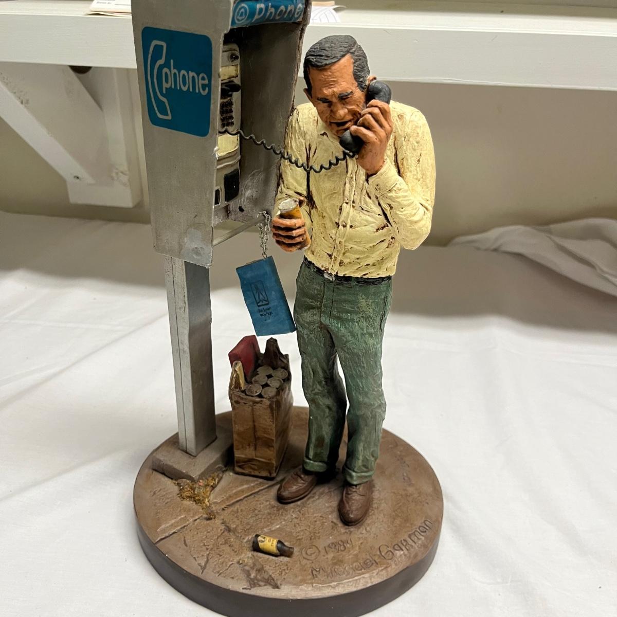 Lot includes a Michael Garman signed and numbered sculpture of Man on Telephone. Material appears to be some sort of ceramic. Sculpture measures 8” x 7” x 13”H.