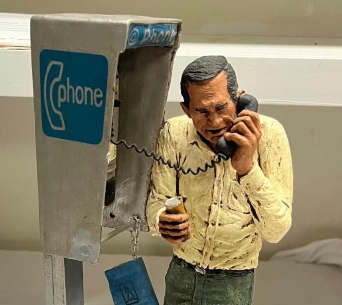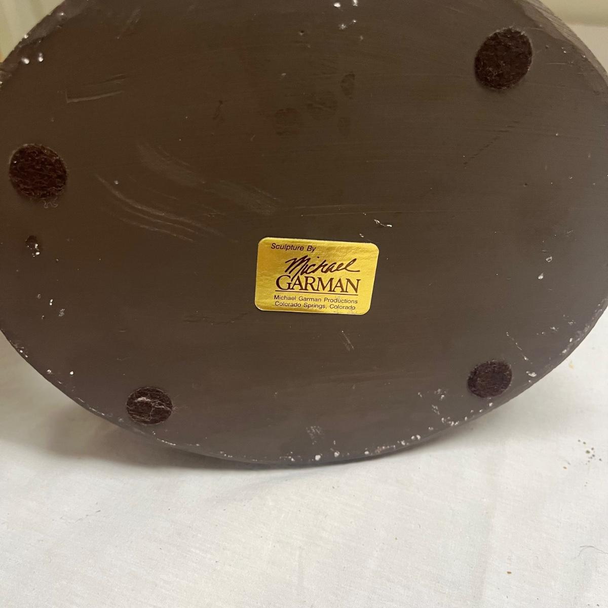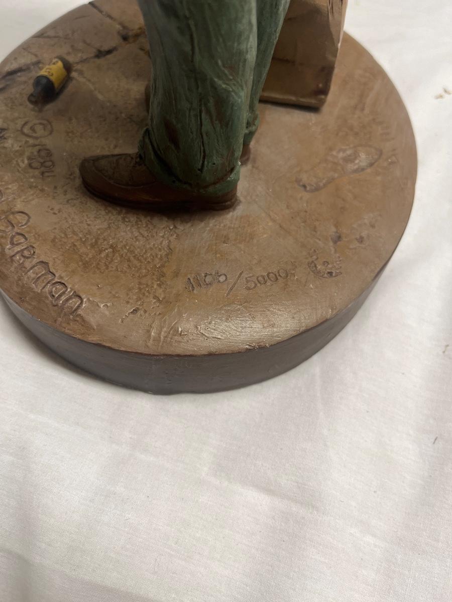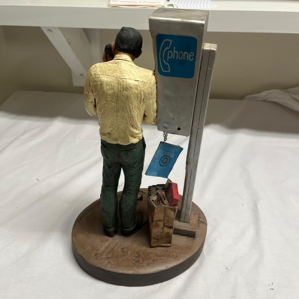 Lot includes a Michael Garman signed and numbered sculpture of Man on Telephone. Material appears to be some sort of ceramic. Sculpture measures 8” x 7” x 13”H.