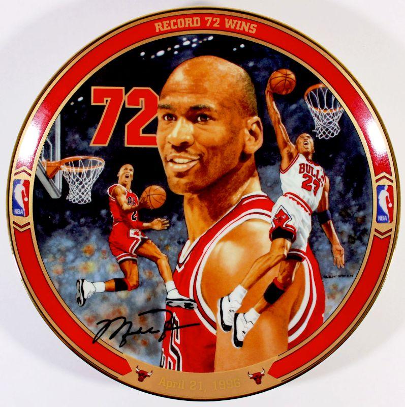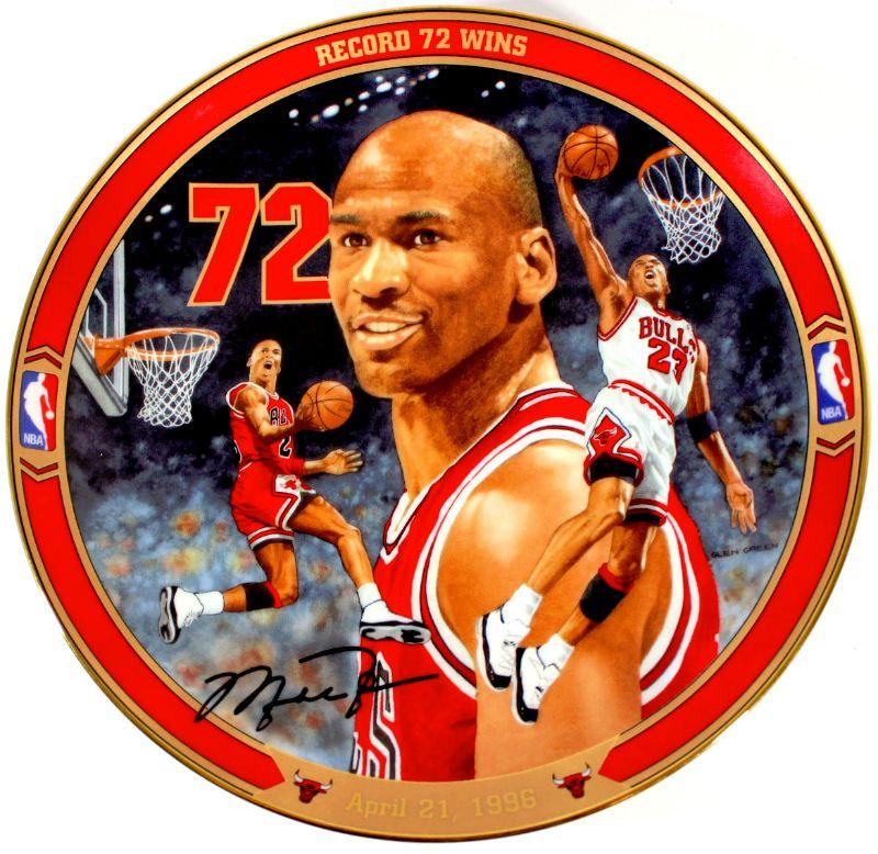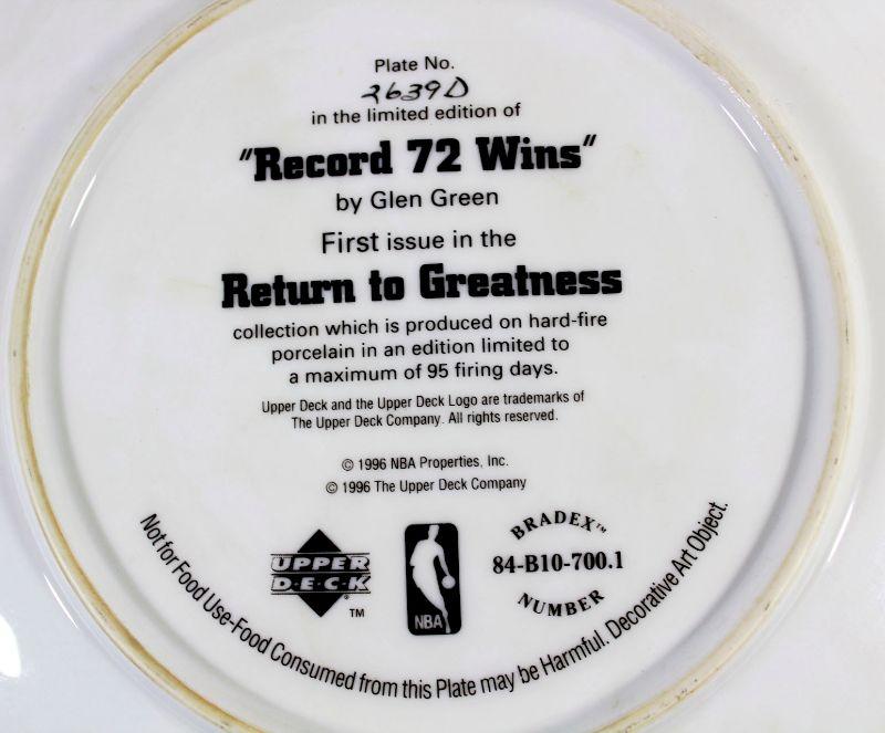 Collector's Item - 1996 Upper Deck Officially Licensed by NBA Limited Numbered Edition Plate with art by Glen Green featuring Michael Jordan - Record 72 Wins, the First Issue in The Return To The Greatness Collection - Plate number #2639D - Great Buy!