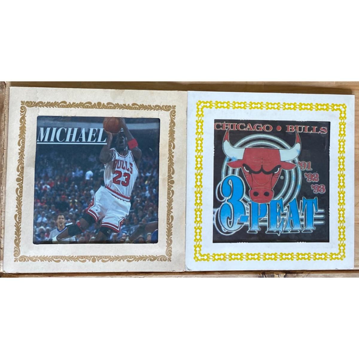 You get two framed prints that are in good condition. The Jordan frame does have more discoloration and a tear in it. Both frames measure approximately 8" x 8". Please see all pictures. Thank you for looking. As a reminder, if this is a lot, we do not break up lots. Also, all items are prepacked, so each item is sent individually. Any item that qualifies for media mail and weighs over one pound will be shipped via media mail. Otherwise, the item will be shipped USPS ground advantage, or UPS ground. Shipping for this item is $10.00. Items ship within two days after payment is received. Item SKU is OTH3069.
