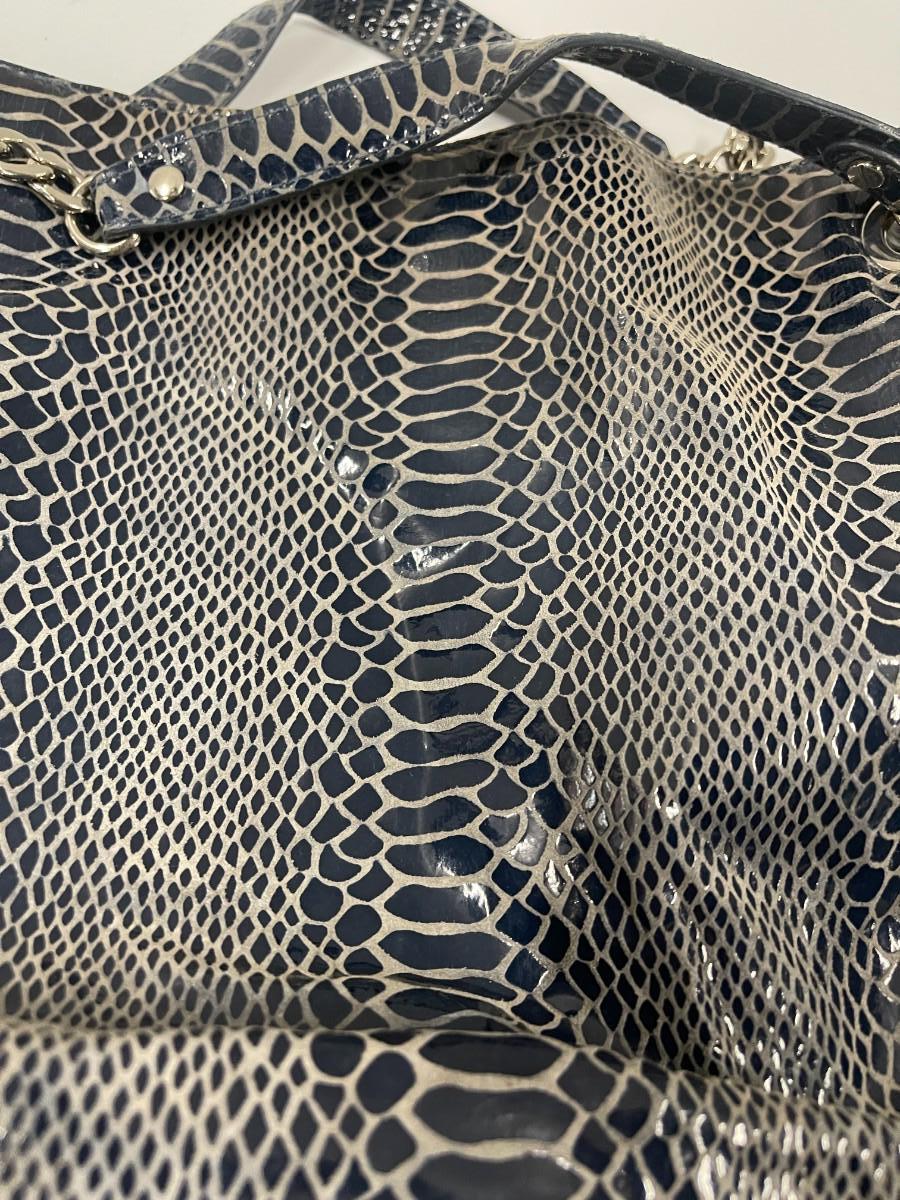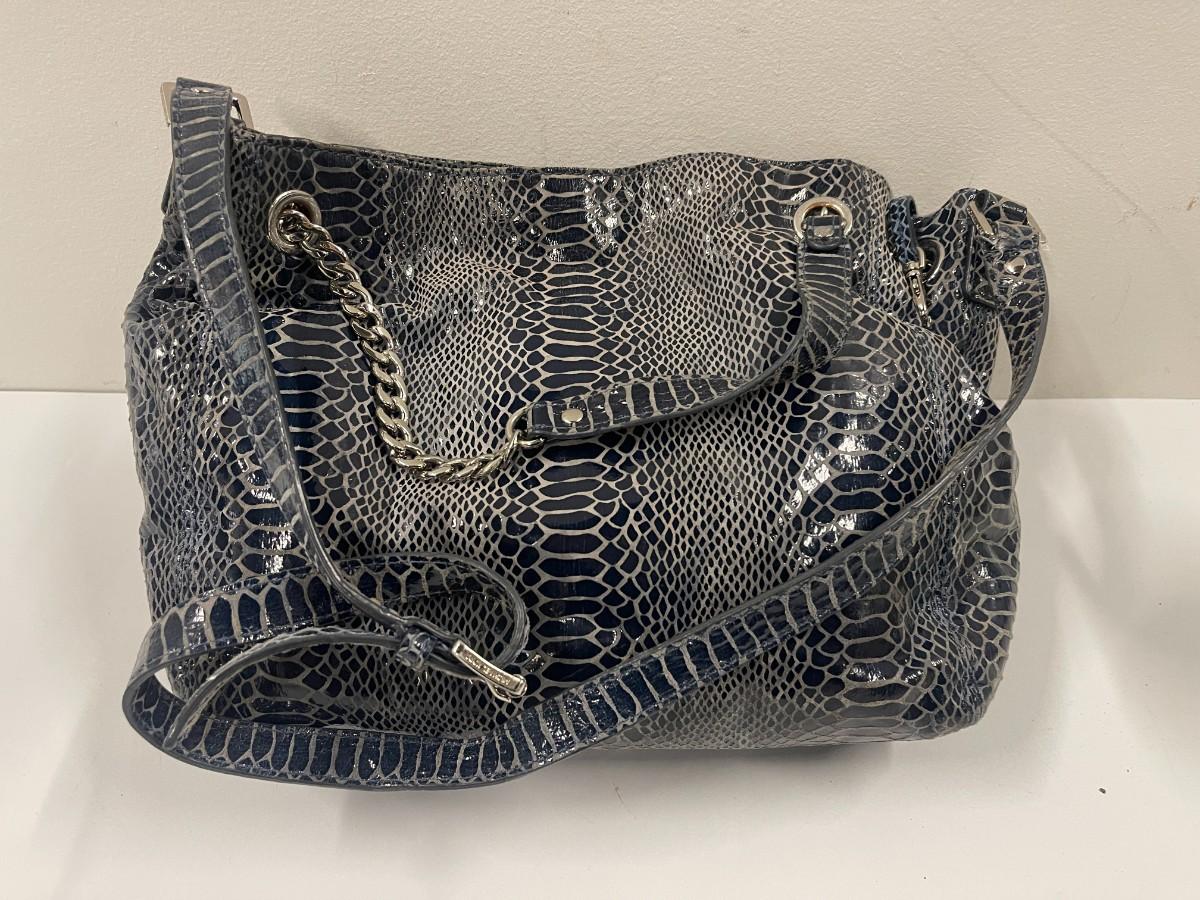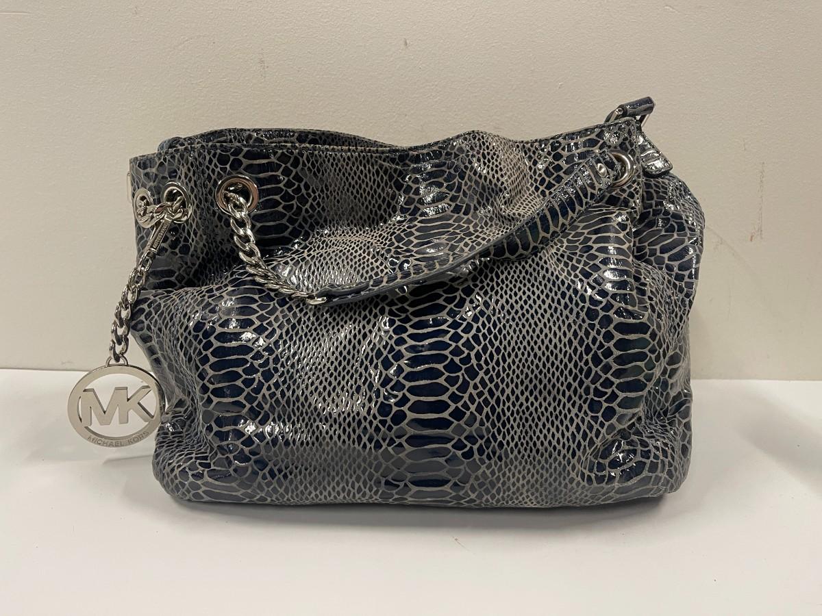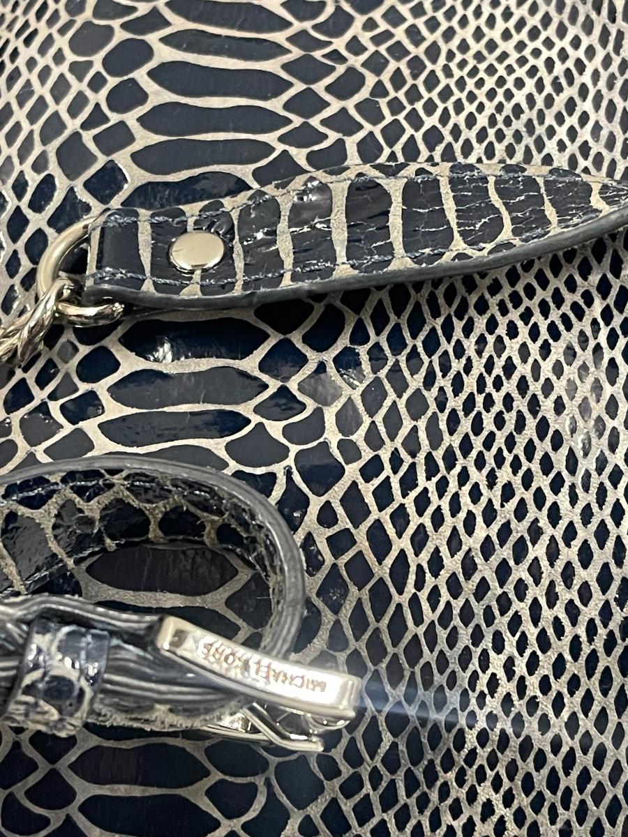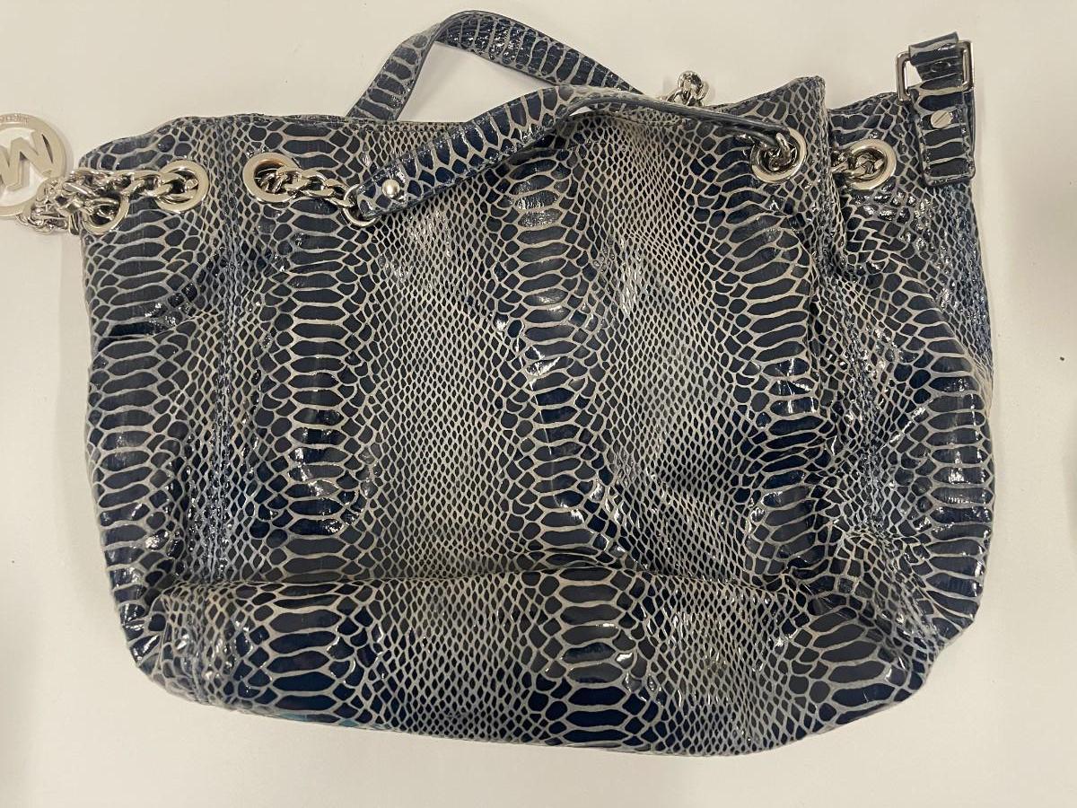Michael Kors blue snakeskin style handbag. 10" x 14". Very good condition.