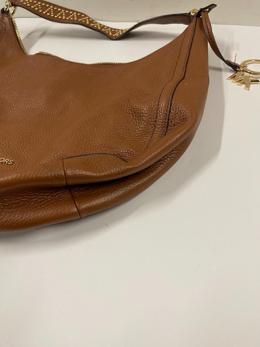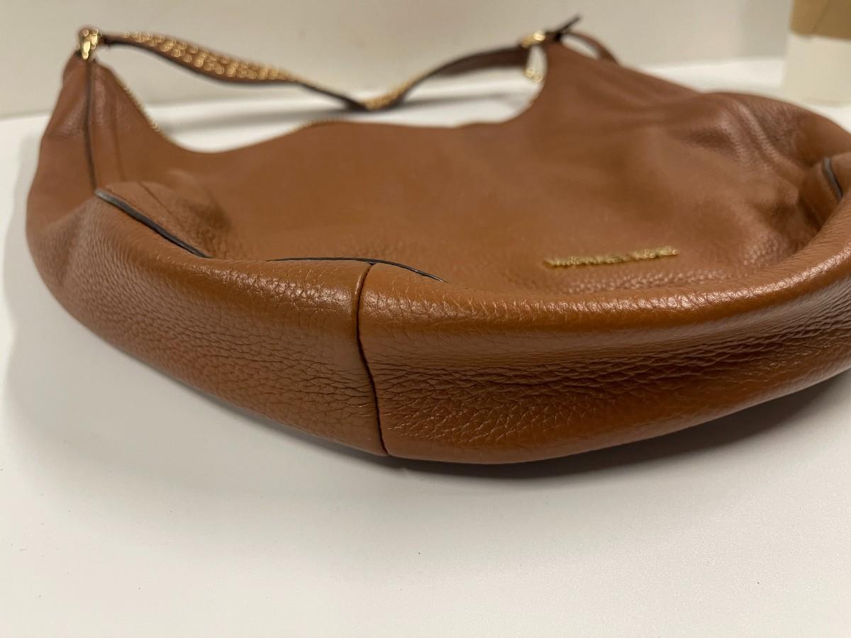 Michael Kors brown pebbled leather hobo bag. Excellent condition with minimal signs of wear. Handle has gold tone embellishments along the handle. Approximately 12" x 14".
